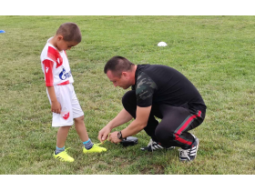 Тренер најмлађих фудбалера, Горан Мадацки, није крио задовољство, окружен децом, али и бројним саиграчима, који су му помагали у организацији првог тренинга.
