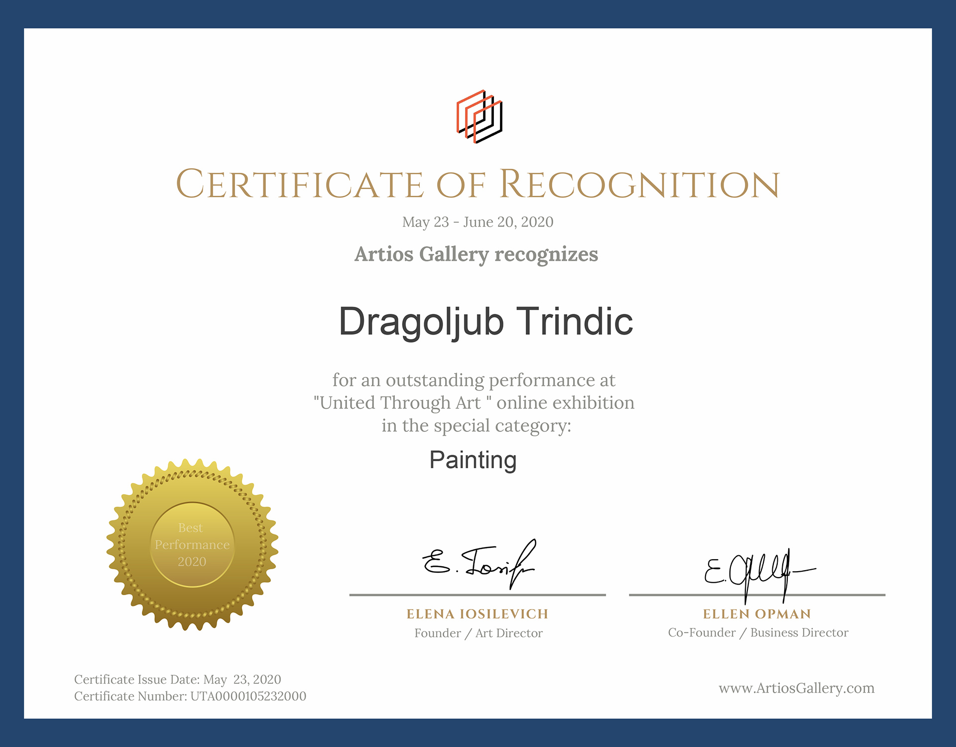 Драгољуб Триндић већ годинама представља општину Пећинци на Зонским и Покрајинским смотрама ликовних стваралаца Срема и Војводине, носилац је бројних награда, а самостално излаже од 2000. године. На међународној сцени појавио се 2013. године прво у Бергаму у Италији, исте године и у Лос Анђелесу у САД, а како каже ово је трећа међународна изложба, овај пут виртуелна.