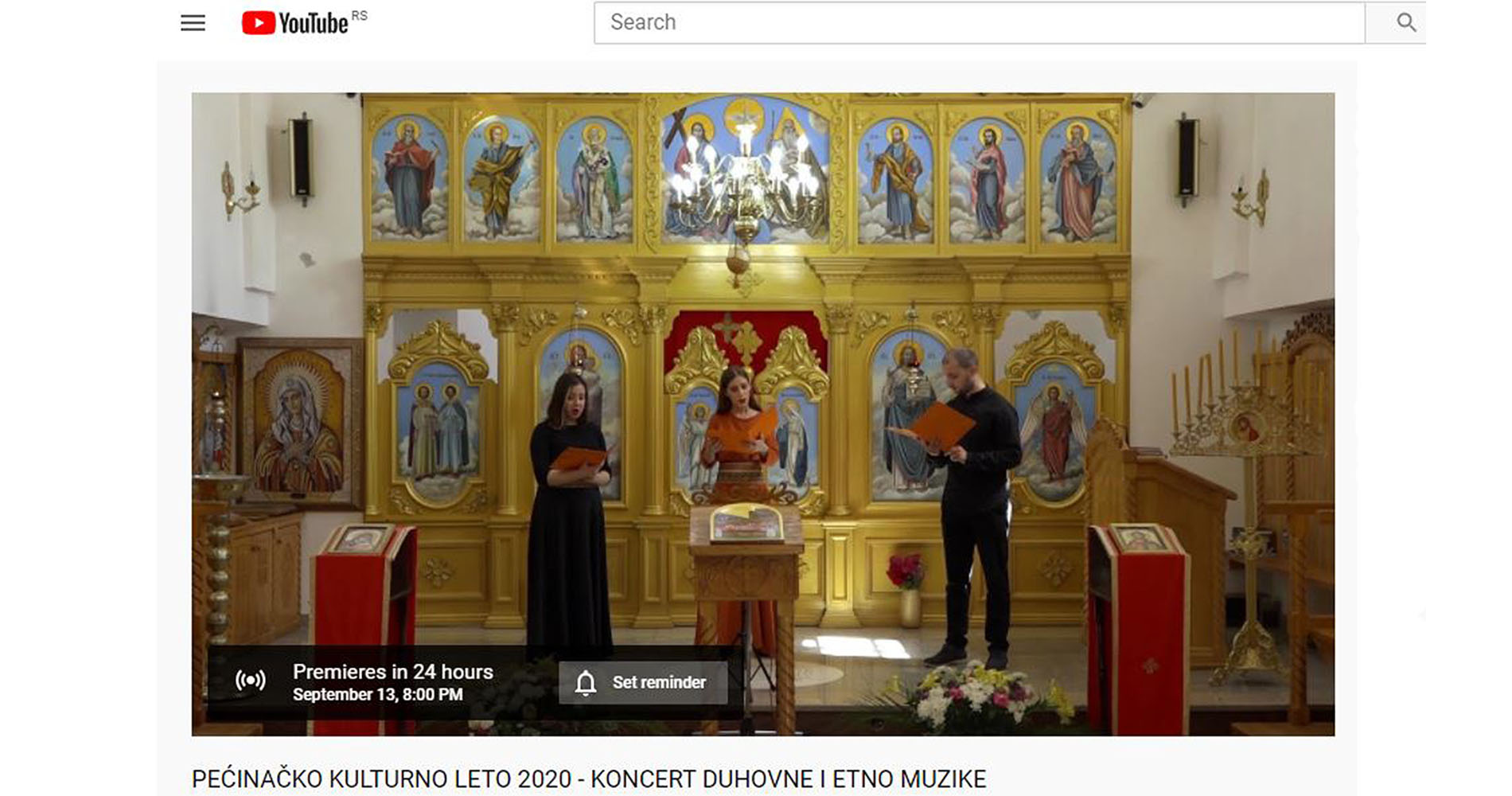 Онлајн Пећиначко културно лето наставља се у недељу, 13. септембра, у 20.00 часова, када ће премијерно бити емитован Концерт духовне и етно музике, а директор пећиначког Културног центра Јован Деврња рекао је тим поводом да је прошле године успостављена одлична сарадња са Архијерејским намесништвом пећиначким што је и ове године резултирало обележавањем овог значајног јубилеја.