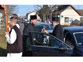 У храму Светог оца Николаја у Пећинцима, 21. јаунара, заједно са намесницима и свештенством Епархије сремске и верницима, епископа сремског Василија дочекао је и председник општине Пећинци Синиша Ђокић. Након дочека у храму, одржана је литија до парохијске сале у Пећинцима, где је одржан радни састанак на тему увођења електронског пословања у Епархији сремској.