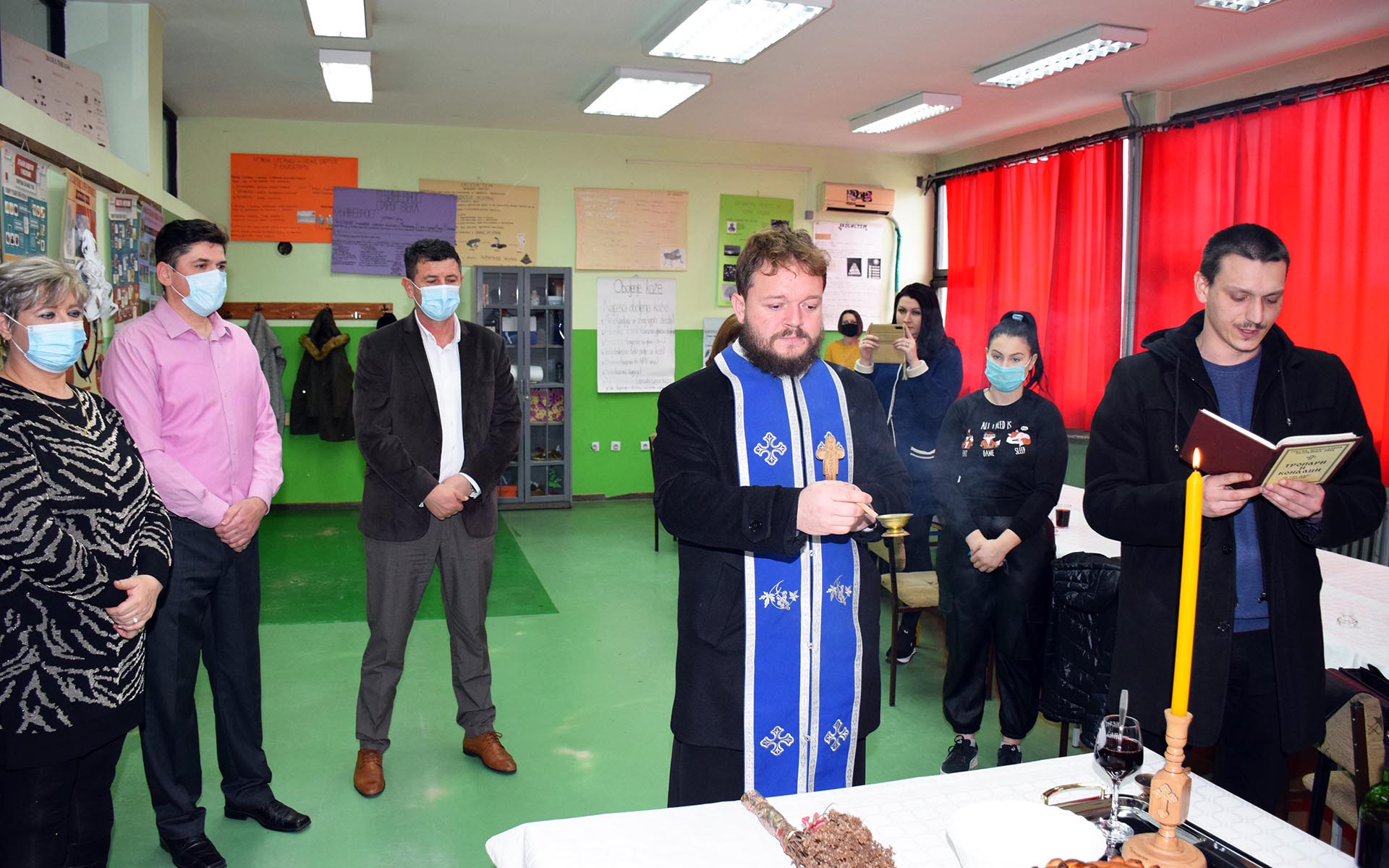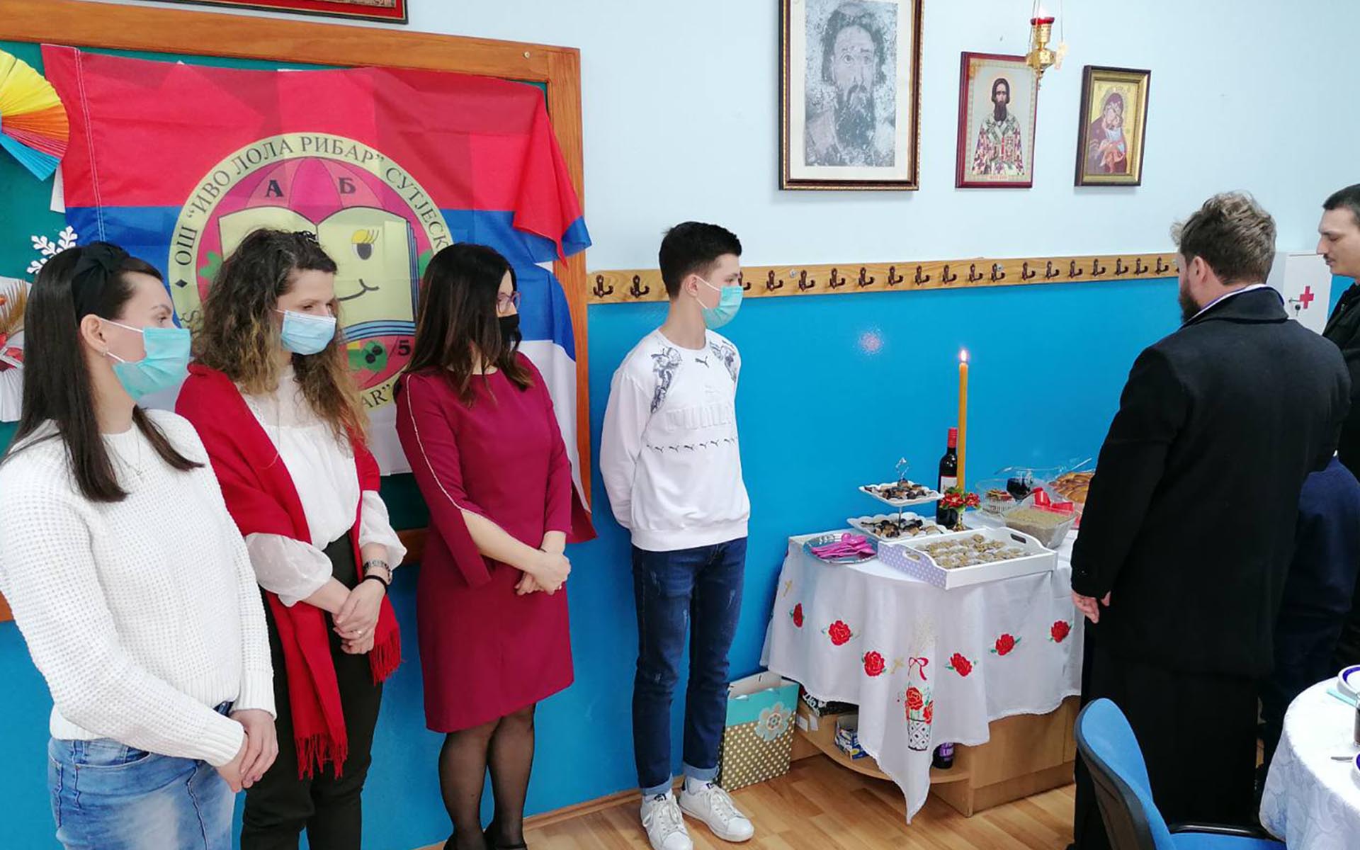 Обред освећења славског колача обавио је архијерејски намесник пећиначки јереј Бојан Мијановић, који је том приликом рекао да смо, упркос свим недаћама и пошастима које су нас снашле претходне и на почетку ове године, показали да и даље пратимо светосавски пут, као и да га радује што ће међу обновљеним школама бити и пећиначка.