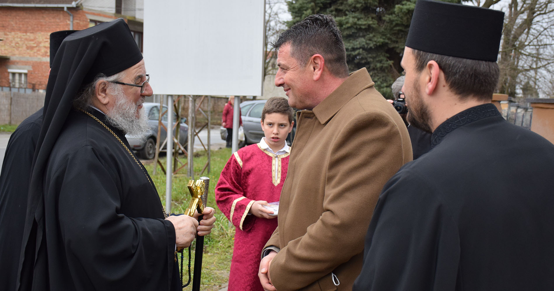 Његово преосвештенство епископа сремског Василија у Огару је дочекао председник општине Пећинци Синиша Ђокић, заједно са свештенством Архијерејског намесништва пећиначког на челу са намесником јерејом Бојаном Мијановићем.