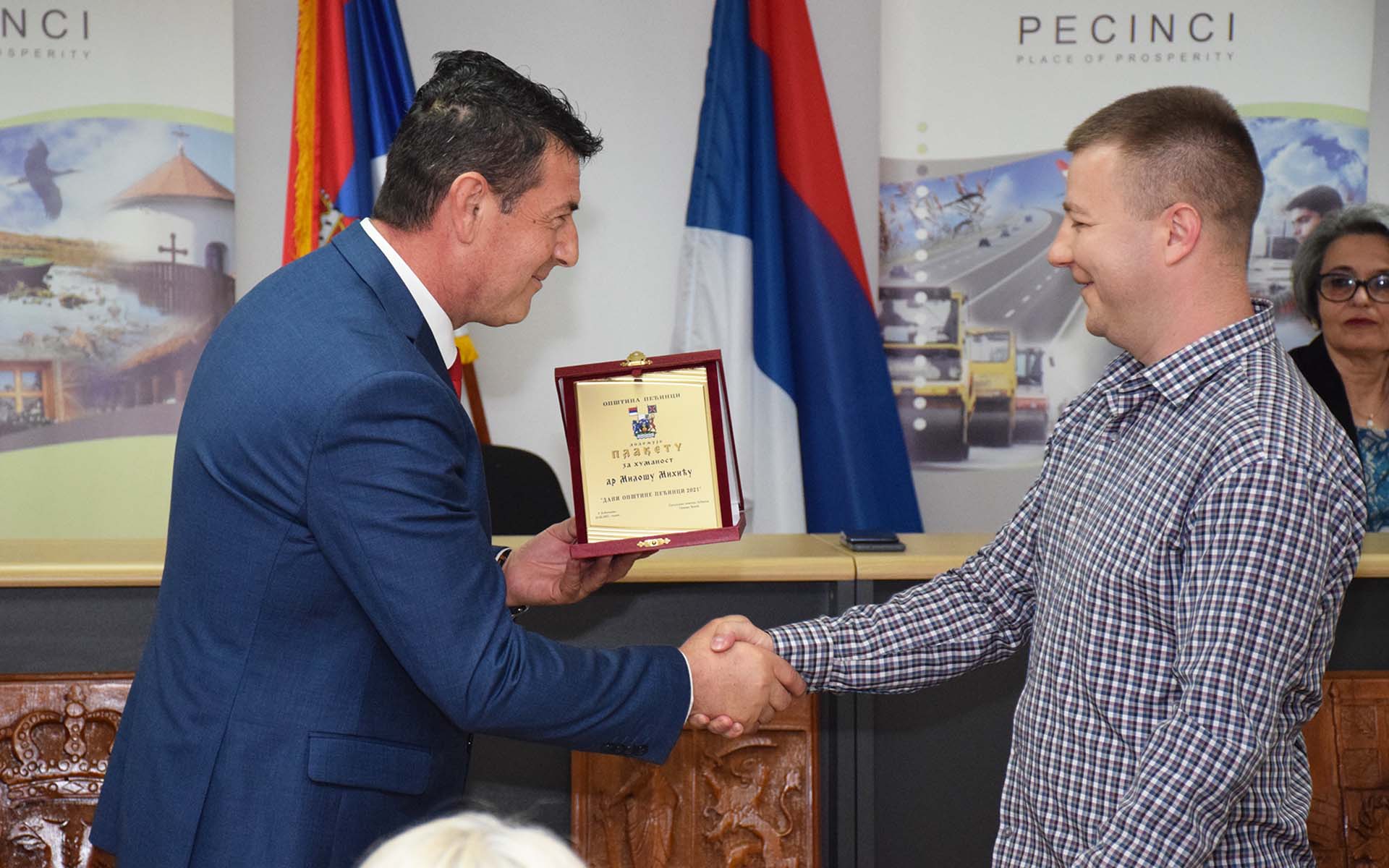 У категорији Плакета за хуманост лауреати су: Мијомир Вукашиновић за 82 добровољна давања крви, Удружење риболоваца “Доњи Товарник” за ангажовање на прикупљању средстава у хуманитарној акцији за “Софијин први корак”, и доктори Владимир Нешовановић и Милош Михић који су својим пожртвовањем током године пандемије постали синоним за ковид амбуланту пећиначког дома здравља “Др Драган Фундук”, а плакете је уручио председник општине Пећинци Синиша Ђокић