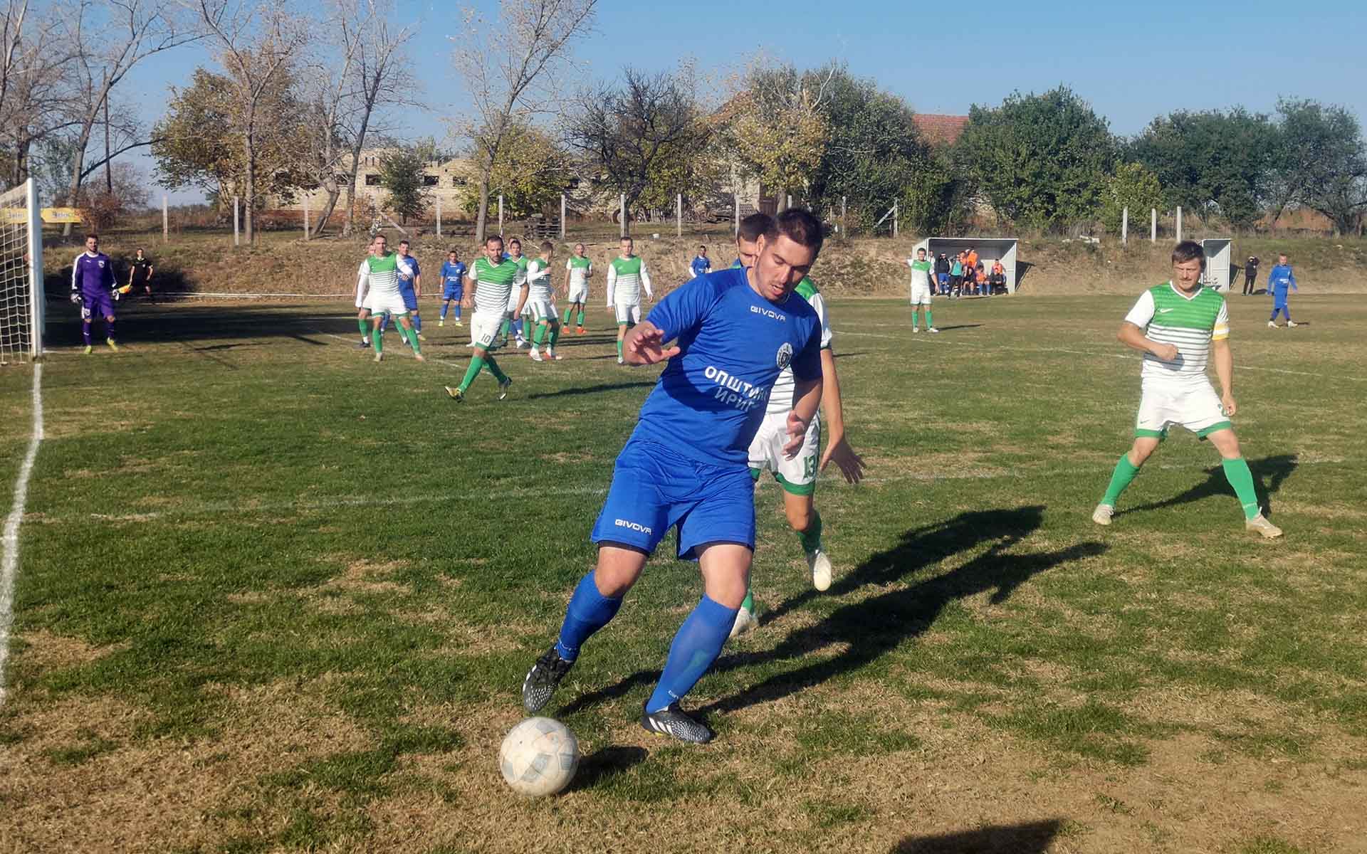 Иако је током већег дела првог полувремена Крушедол имао иницијативу, гости из Огара су били конкретнији: Томић у 3. минуту не успева да протури лопту поред Иванишевића, а двадесетак минута касније Петронијевић погађа пречку гола домаћина.