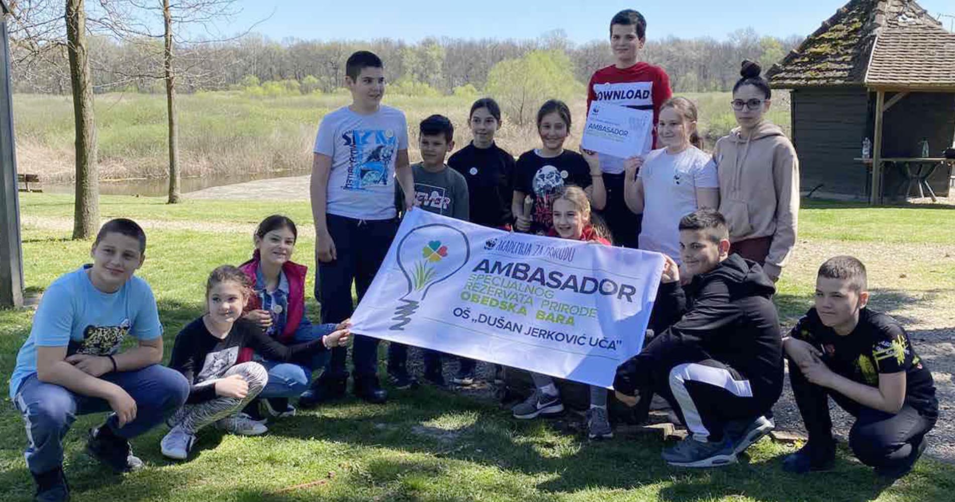 Почетком ове школске године, Основна школа “Душан Јерковић Уча” из Шимановаца прикључила се пројекту “Академија за природу и људе”, у оквиру којег су чланови еко-тима “Уча за природу”, током посете Специјалном резервату природе Обедска бара, 6. априла, проглашени Амбасадорима овог нашег бисера природе.