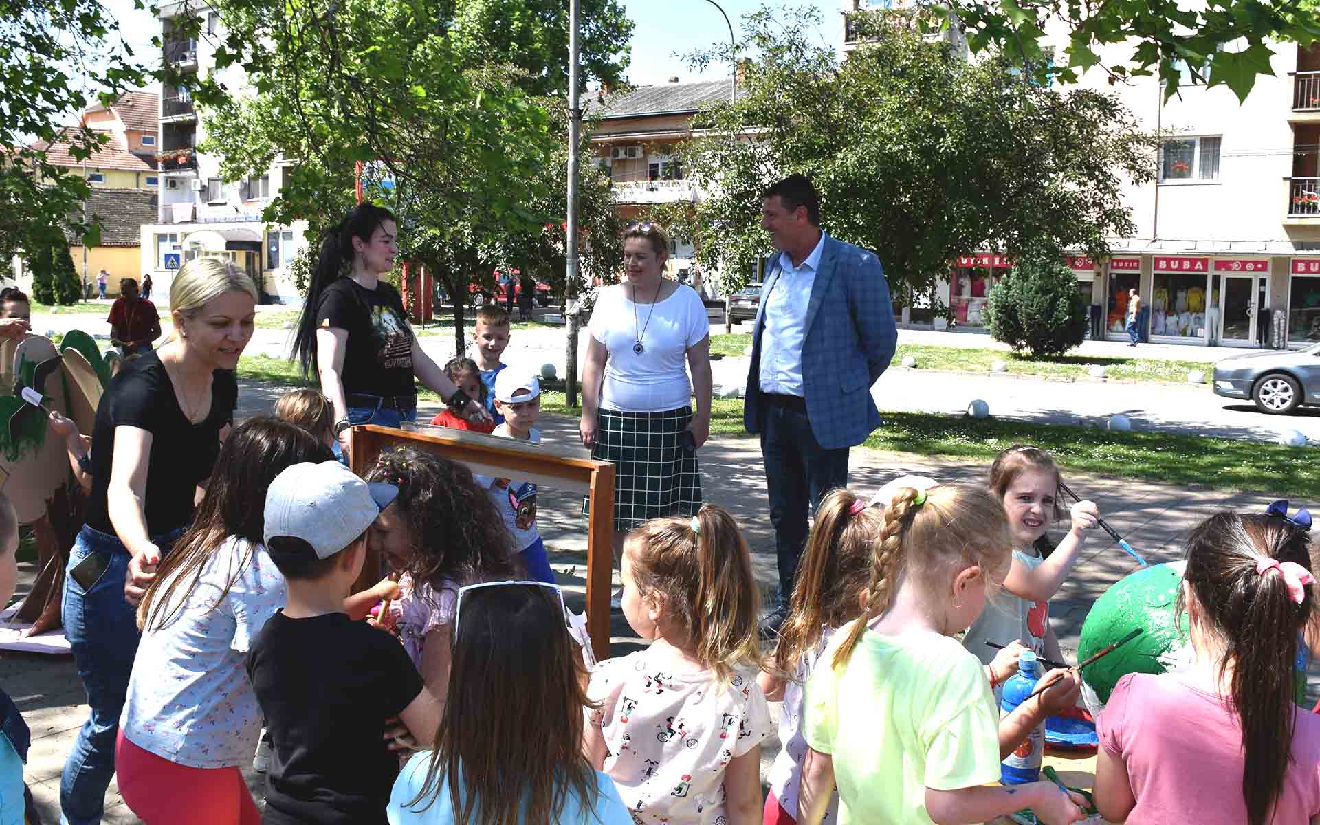 Мале уметнике – екологе обишао је председник Општине Пећинци Синиша Ђокић, који је том приликом рекао да је ово најлепши почетак обележавања Дана општине.