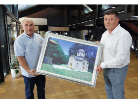 Миодраг Радовановић је донео и слику обновљеног православног храма у Каменици, која ће бити уручена директору предузећа „Луки комерц“ Милораду Пантићу, у знак захвалности за личне донације за обнову храма.