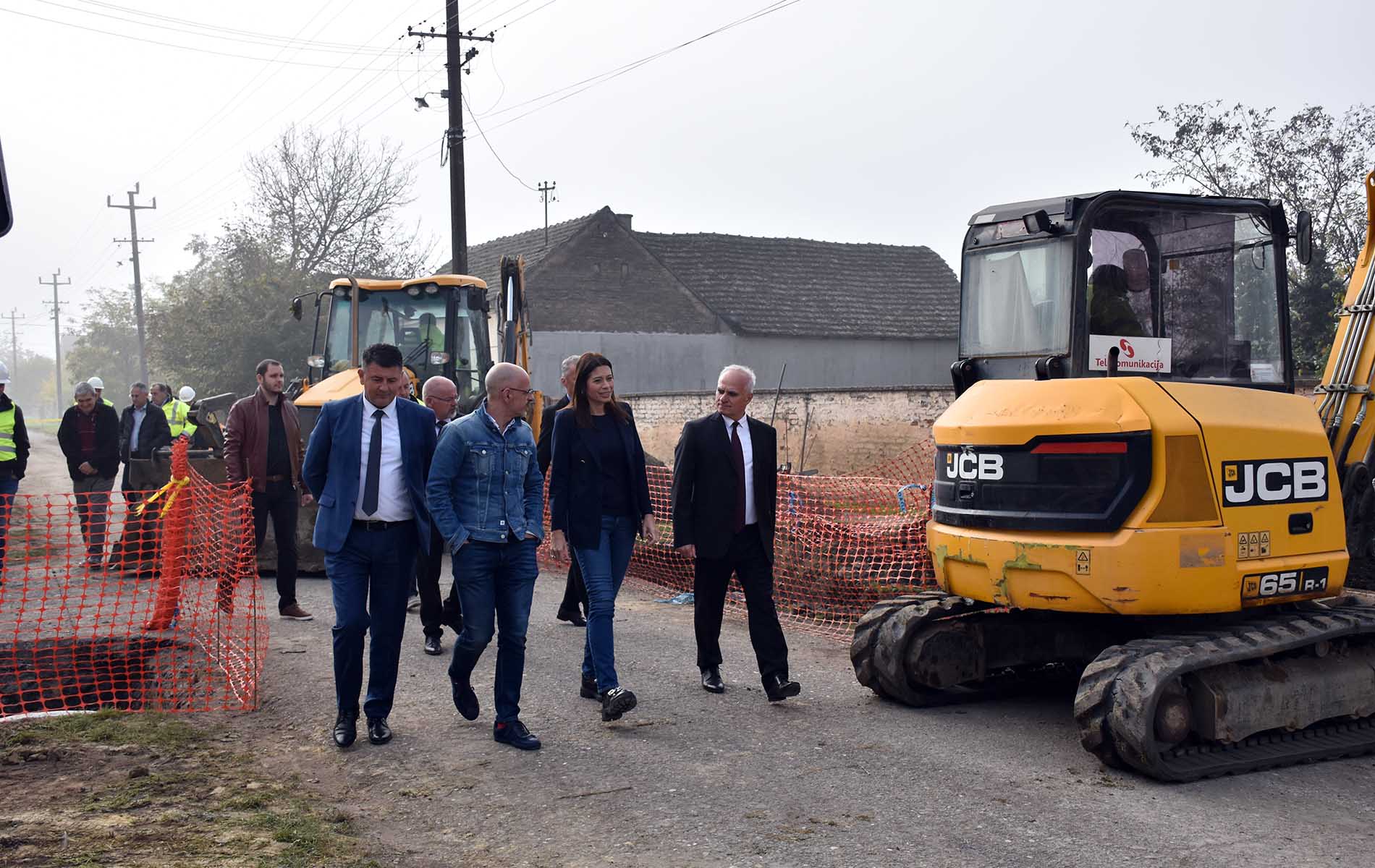 Председник општине Пећинци Синиша Ђокић је данас у Попинцима дочекао министарку заштите животне средине Ирену Вујовић и министра за јавна улагања Марка Благојевића, са којима је обишао започете радове на изградњи канализационе мреже у овом насељу.