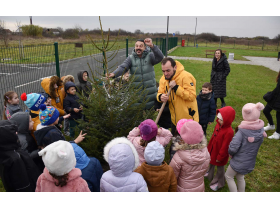 Данас је општинско руководство на челу са председником општине Пећинци Синишом Ђокићем, заједно са представницима Е.Т.М. продукције, у дворишту вртића у Шимановцима засадило шест садница четинара које је ова продукција донирала вртићу.