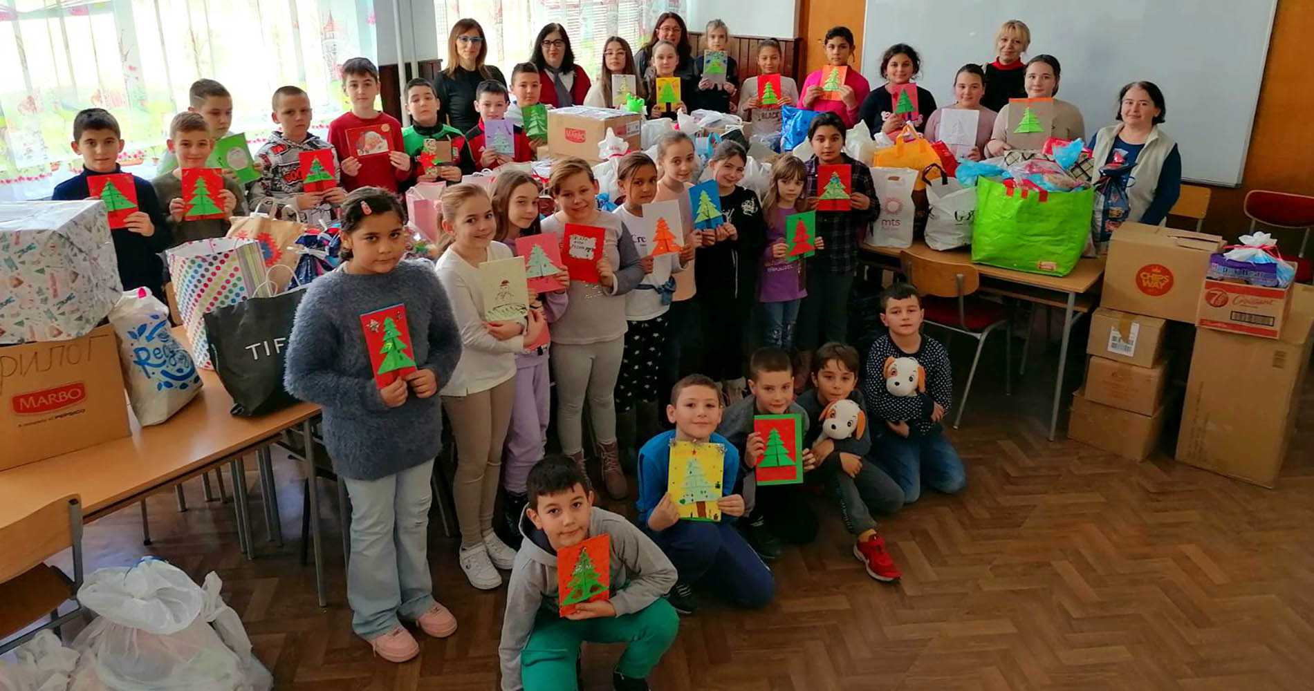 “Веома смо поносни на наше ученике који су прикупили велику количину слаткиша. Посебно бисмо похвалили ученике подручних школа који су предано сакупљали слаткише, сланише, играчке и школски прибор, а онда их све спаковали у кутије обложене украсним папиром. Наши талентовани ђаци пожелели су пре свега мира и благостања, здравља, среће и љубави за Нову годину својим вршњацима путем ручно израђених честитки веселих боја и облика. Караван љубави и подршке, чији смо и ми делић, креће ове недеље пут Ораховца, Велике Хоче, Гораждевца, Штрпца, Грачанице и Косовске Митровице да обрадује и угреје срца наших малишана из јужне покрајине” - рекла нам је Срдић.