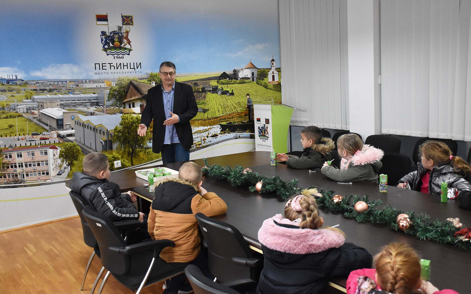 Уз чоколадице и сокиће, пажњу предшколаца држао је Душан Срећков из општинске Службе са односе са јавношћу, који их је упознао са грбом Општине Пећинци и његовим значењем, као и са значајним индустријским, природним, социјалним и културним обележјима пећиначке општине.