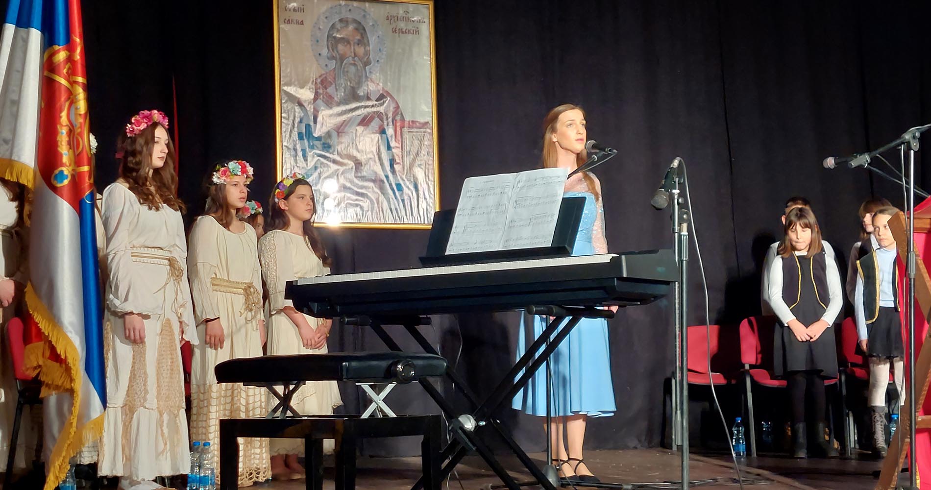Светосавска свечаност започела је химном Светом Сави у интерпретацији Бојане Радивојевић, уметничког руководиоца вокалног састава “Вера, Нада, Љубав” из Пећинаца и диригенткиња, и беседом јереја Божидара Васића из Огара, који је том приликом цитирао епископа Василија - Са чиме ми то данас можемо и смемо изаћи пред Светог Саву, а да нас се Свети Сава не постиди?