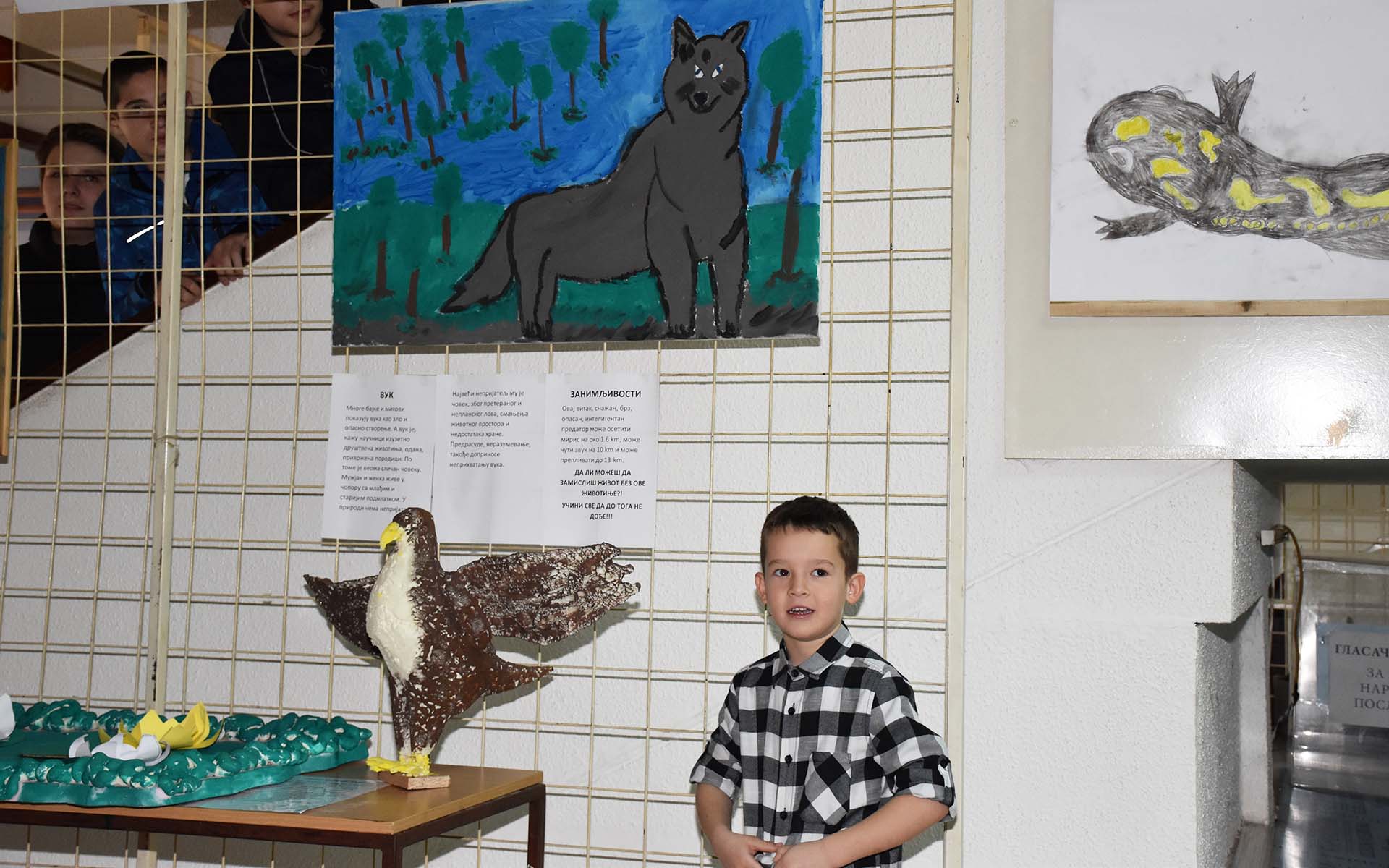 “Код деце је већ развијена емпатија према другим људима и животињама, само то треба неговати и развијати, и даље преносити то знање. Ми смо дубоко повезани са природом, јер смо и ми део природе, и бринући о другима ми уствари бринемо о себи. На овој изложби налазе се групни радови деце, која су сликала различитим техникама на великим форматима, како би то било што упечатљивије. Такође, направили смо и макете животиња од пур пене које смо излили, да би затим клесали и правили облике, а деца су на крају бојила” - рекла нам је Илић и додала да су три месеца припремали ову изложбу, а велику су им помоћ пружиле и наставнице ликовног и биологије из пећиначке основне школе.