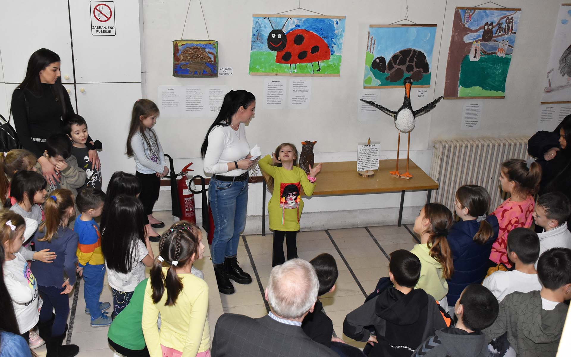 Мали “еколошки амбасадори” на отварању изложбе упознали су присутне о изложеним заштићеним врстама и њиховим специфичностима, а подршку су им пружили и њихови старији другари, ученици петог и седмог разреда пећиначке Основне школе “Слободан Бајић Паја” са наставницама Весном Луковић и Иреном Радивојевић.