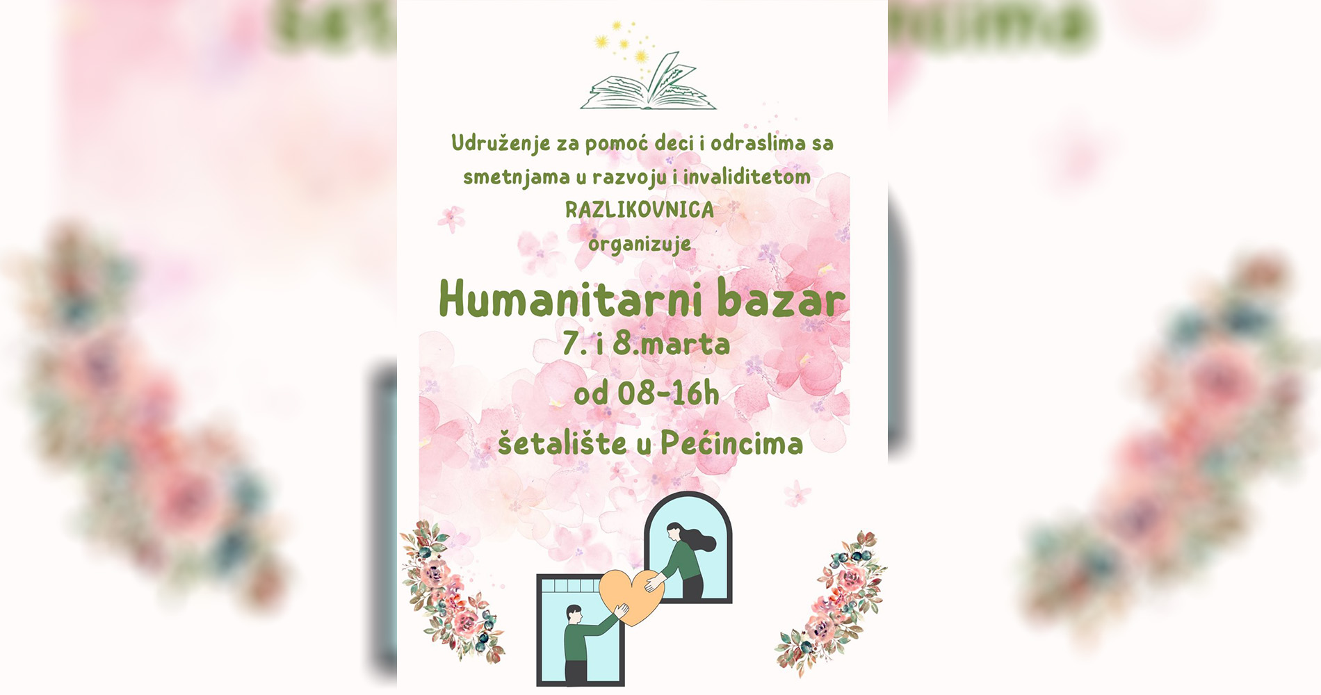 Удружење за помоћ деци и одраслима са сметњама у развоју и инвалидитетом “Разликовница” из Пећинаца, организује хуманитарни осмомартовски базар, током којег ће на пећиначком шеталишту продавати домаће производе, накит, књиге, едукативни материјал и бројне друге поклоне пригодне за 8. март.