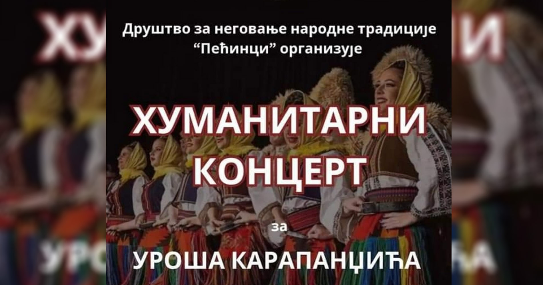 У пећиначком Културном центру, у недељу 26. марта, Друштво за неговање народне традиције “Пећинци” одржаће хуманитарни концерт за Уроша Карапанџића, током којег ће наступити сви чланови пећиначког друштва, као и гости из Шимановаца ДННТ “Искон” и из Добановаца КУД “Будућност 1984”. Техничку подршку пружиће КЦ, а цена улазнице је 300 динара.