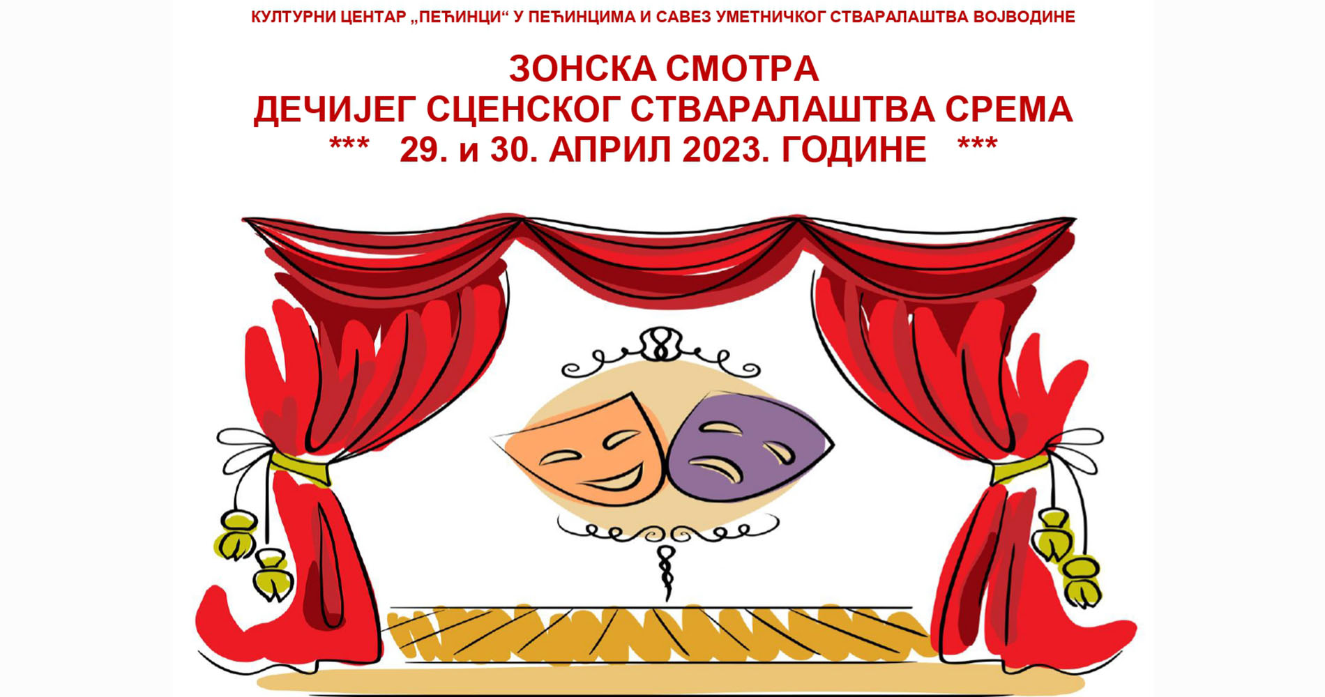 Најбоље дечје представе у Срему биће приказане предстојећег викенда, 29. и 30. априла, у оквиру Зонске смотре дечјег сценског стваралаштва Срема коју организују Културни центар „Пећинци“ и Савез уметничког стваралаштва Војводине, а генерални покровитељ манифестације је Општина Пећинци.