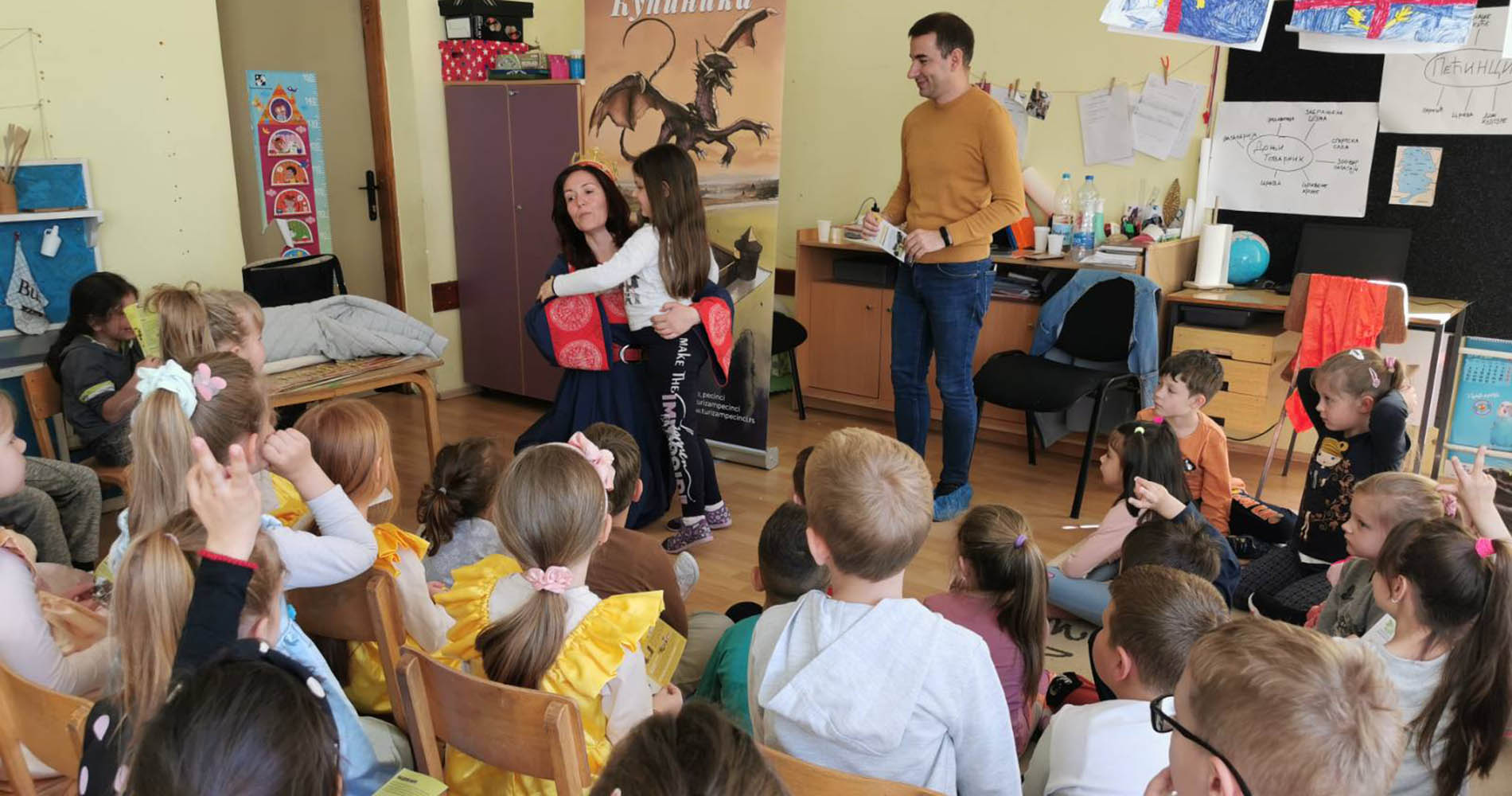 Деца су имала прилику да се сликају са Змајем од Купиника, да пробају средњовековне круне, да глуме деспоте, витезове и принцезе, али и да сазнају како су се облачиле даме на дворовима средњовековне Србије и зашто је туристички слоган општине Пећинци „Предео где природа грли историју“.
