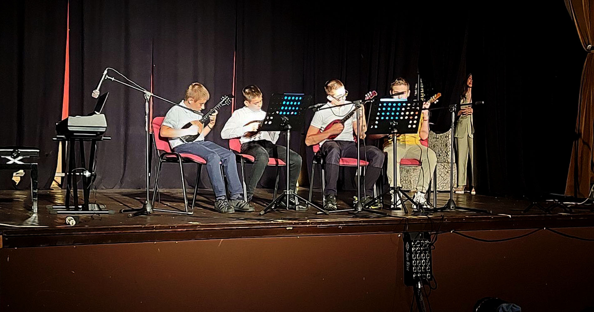 Ученици са одсека клавира, тамбуре, гитаре и хармонике су се представили соло тачкама, дуетима и једним квартетом, а цео концерт је био уоквирен хорским нумерама са солистима.