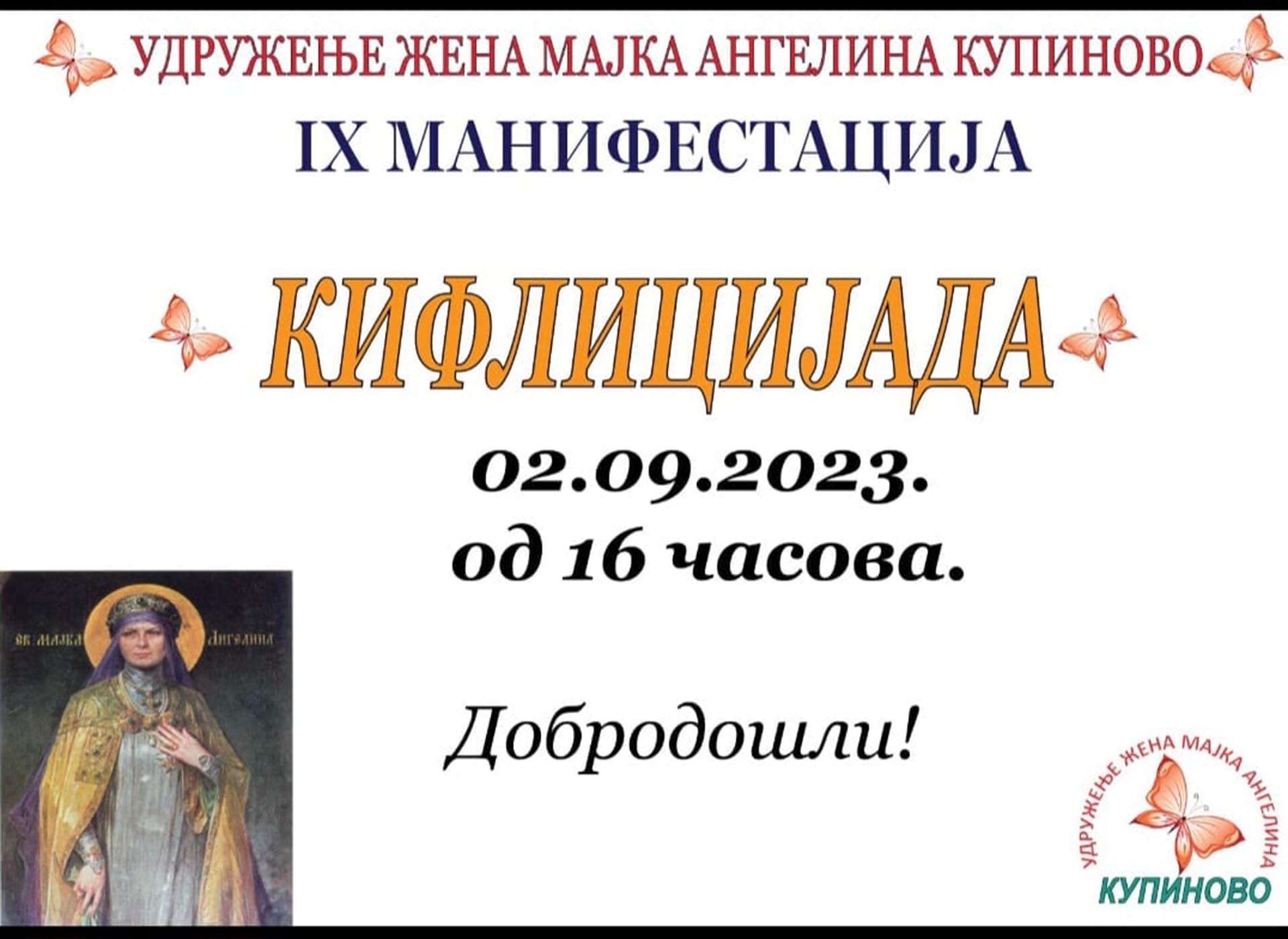 Удружење жена “Мајка Ангелина” из Купинова, у сарадњи са Саветом месне заједнице овог насеља а под покровитељством Општине Пећинци, организује у суботу 2. септембра, по девети пут манифестацију посвећену мирисним кифлицама “Кифлицијаду”.