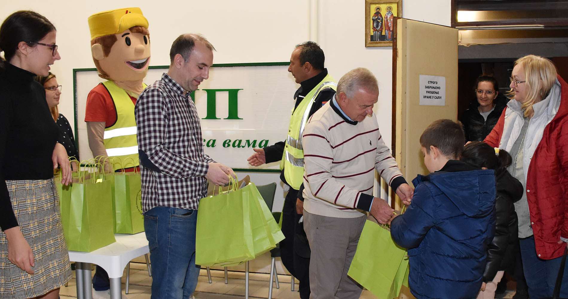 “И ове године сваки првак са територије наше општине добио је на поклон флуоресцентни прслук, фрлуоресцентну наруквицу и привезак у облику прслука, као и сокиће и кроасане, а у плану је подела и интерактивног приручника Пажљивкова правила у саобраћају, који у комбинацији са апликацијом на телефону или таблету најмлађе на едукативан и савремен начин учи како да се безбедно понашају у саобраћају” – рекао је Мијић.