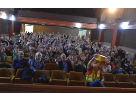 У Културном центру Пећинци Пажљивко се јуче дружио са првацима из све три основне школе са територије пећиначке општине током интерактивне представе коју су и ове године организовали Савет за безбедност саобраћаја Општине Пећинци и републичка Агенција за безбедност саобраћаја из Београда.