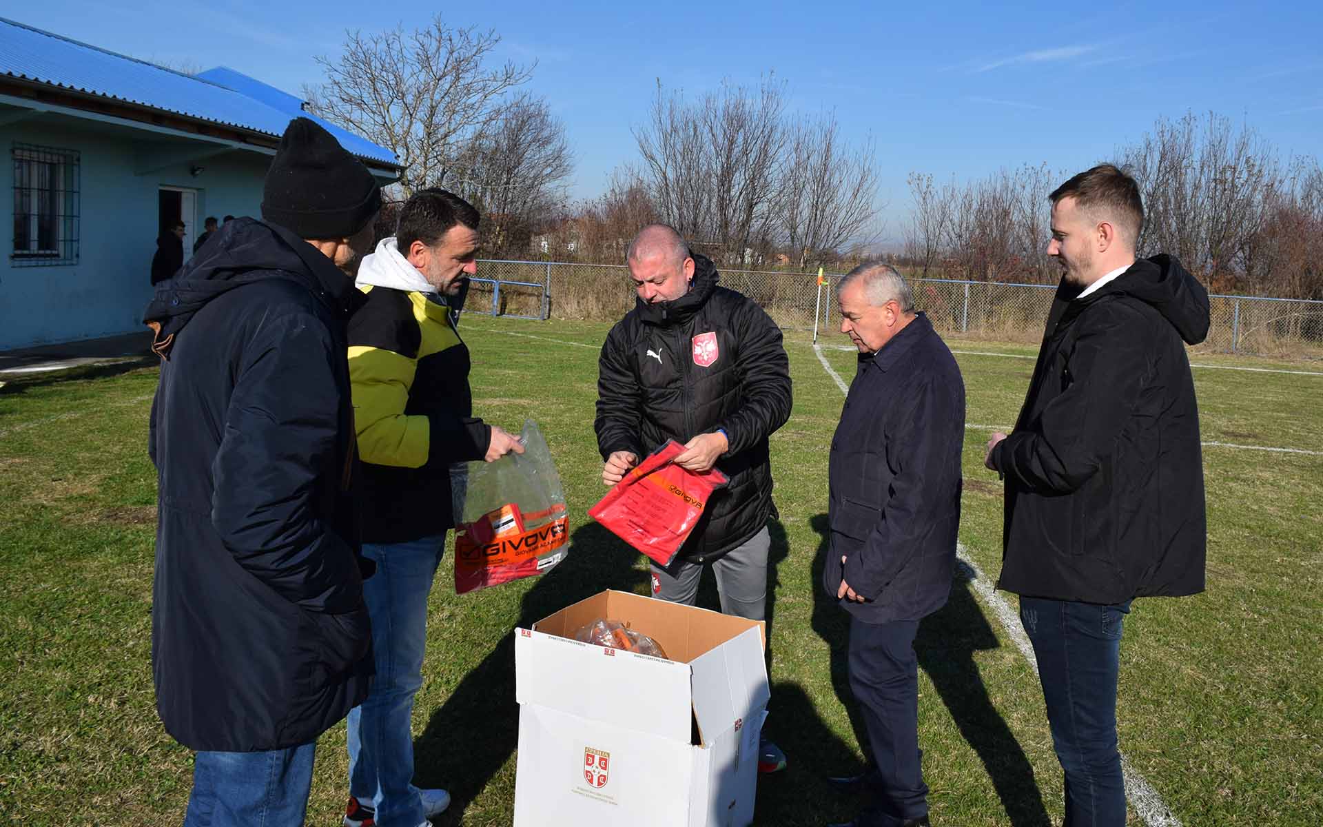 Никола Лазетић је током посете разговарао и са фудбалерима Витеза, као и младим фудбалерима Слободе из Доњег Товарника, и том приликом уручио донацију у виду спортске опреме.