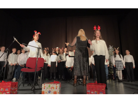 Младим солистима се придружио и велики хор састављен од свих ученика школе, а посебно изненађење на овом концерту био је и новооформљени женски хор.