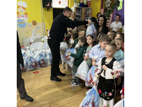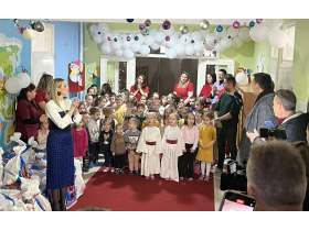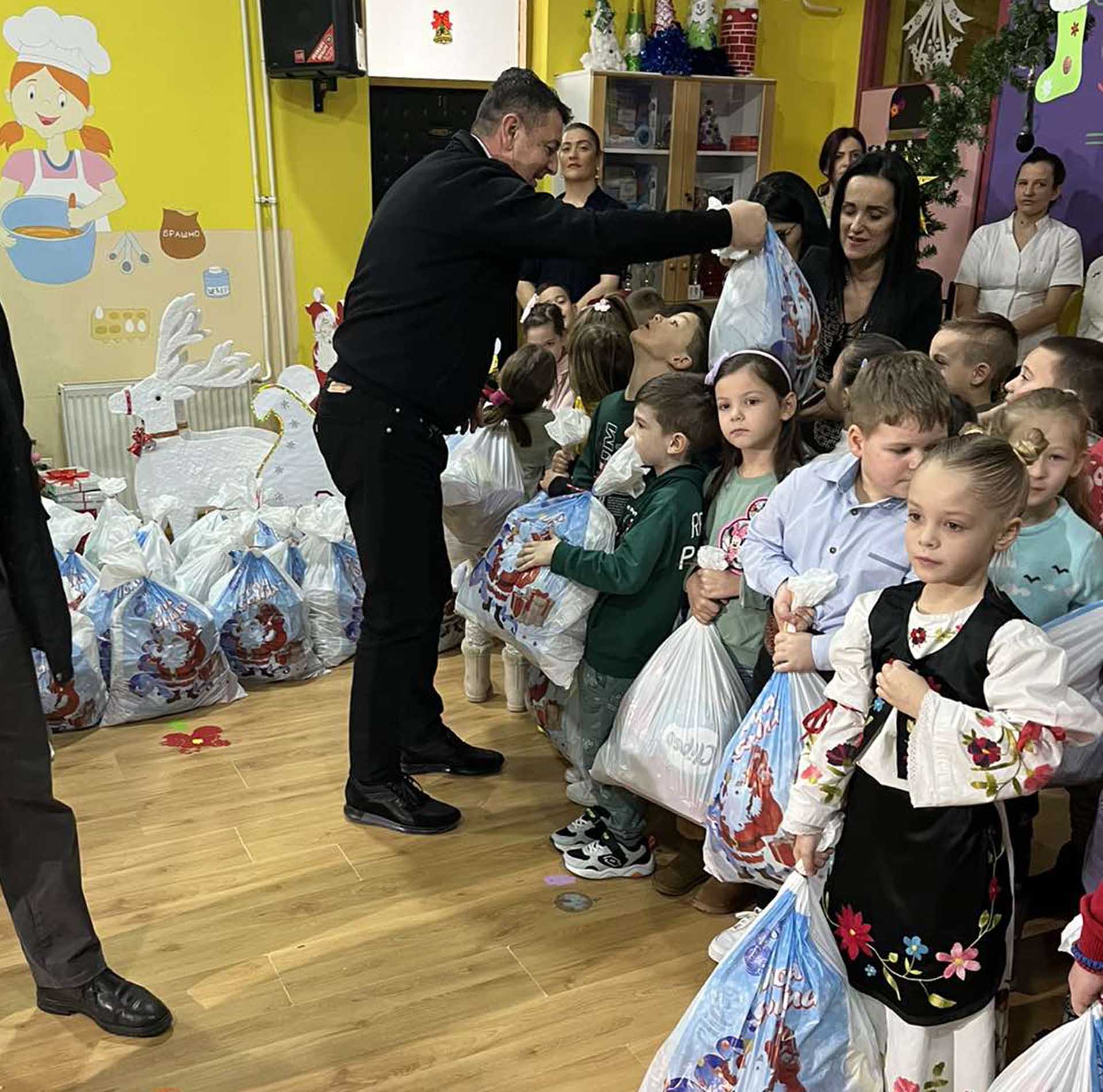 Председник Ђокић је том приликом уручио 160 пакетића деци из Предшколске установе „Весело детињство“ из Лешка, које је донирала Општина Пећинци.