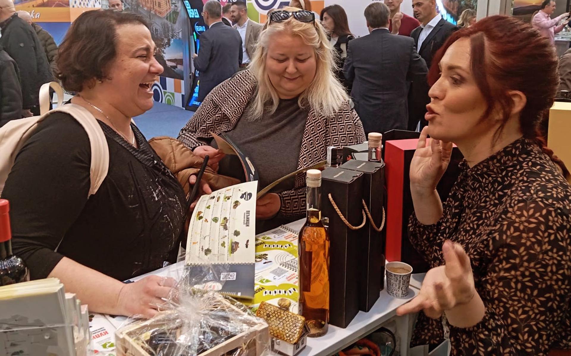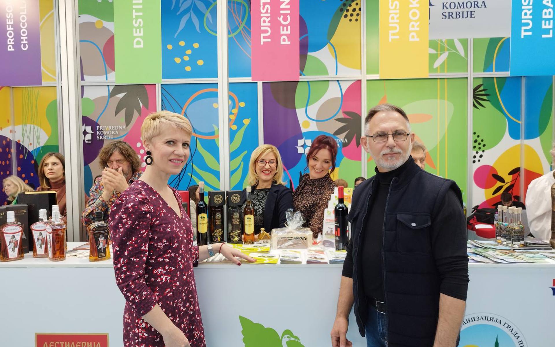 Она додаје да су посетиоци 45. Сајма туризма били у прилици да се упознају и са производима удружења жена из пећиначке општине, као и са производима дестилерија и винарија из наше општине, а штанд ТО Пећинци су, како је рекла Бошковић, посетили и министар Туризма Хусеин Мемић и директорка ТО Србије Марија Лабовић.