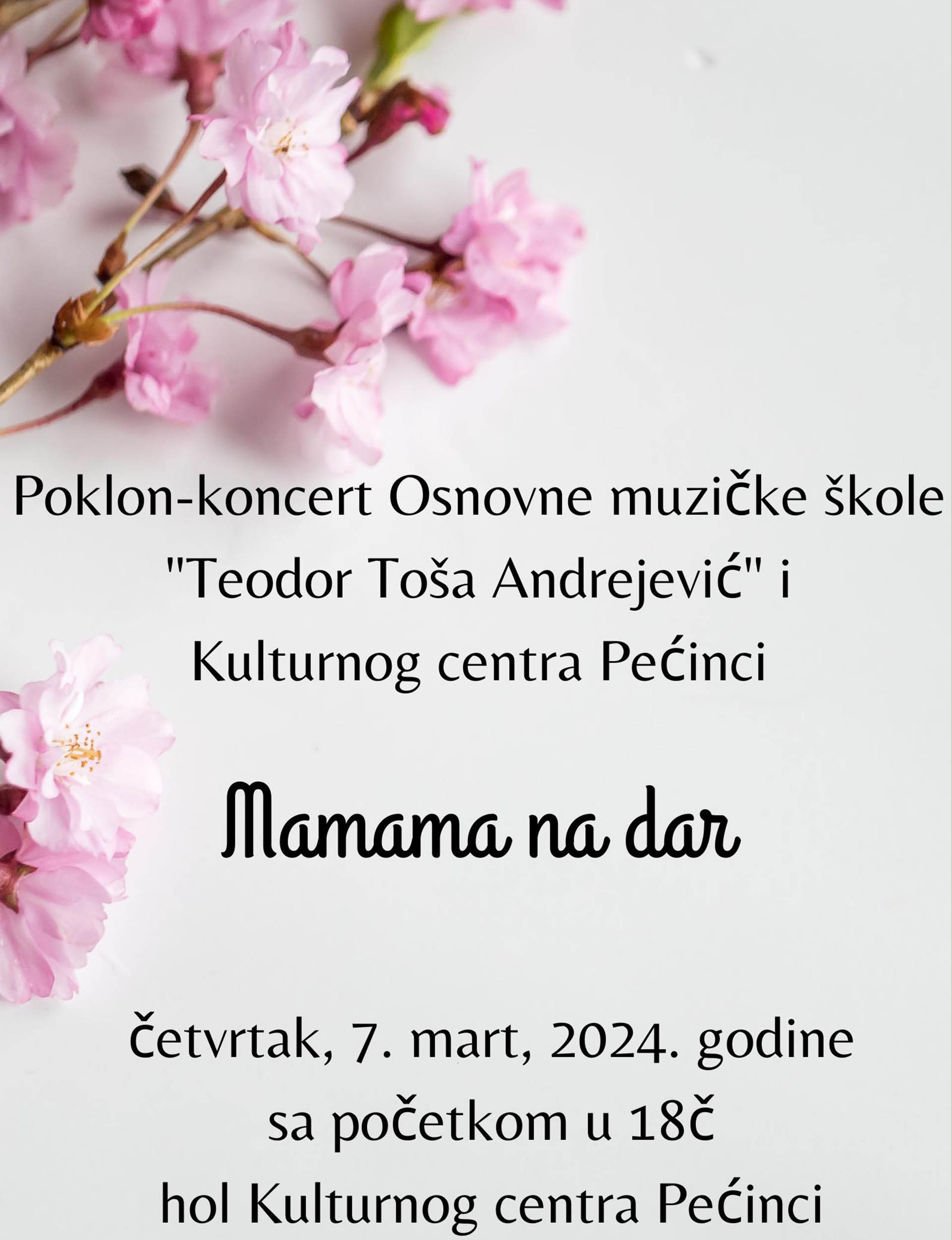 Ученици и наставници румске Музичке школе „Теодор Тоша Андрејевић“ одељење у Пећинцима и ове године одржаће концерт у част свих мајки у пећиначком Културном центру.