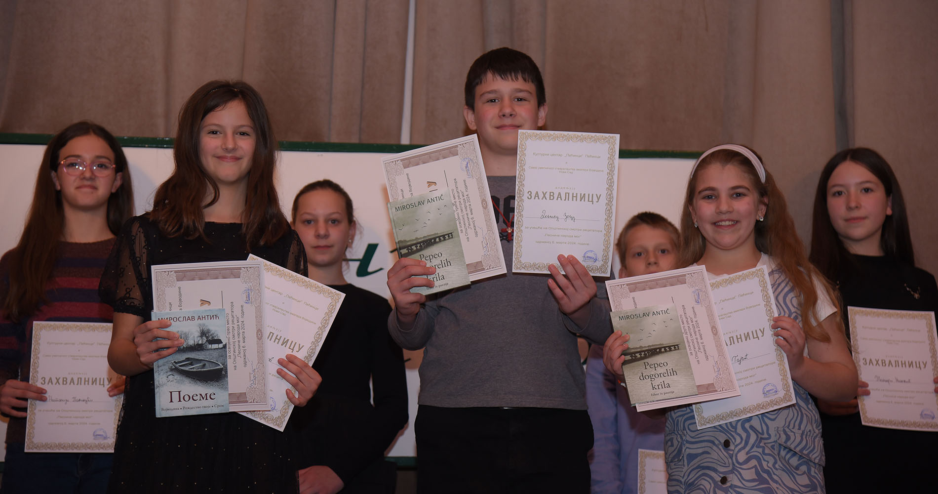 Свих деветоро рецитатора пласирали су се на виши ранг такмичења и они ће представљати општину Пећинци на Зонској смотри рецитатора која се одржава у Сремској Митровици 16. и 17. марта у организацији Установе за неговање културе „Срем“ и Савеза уметничког стваралаштва аматера Војводине.