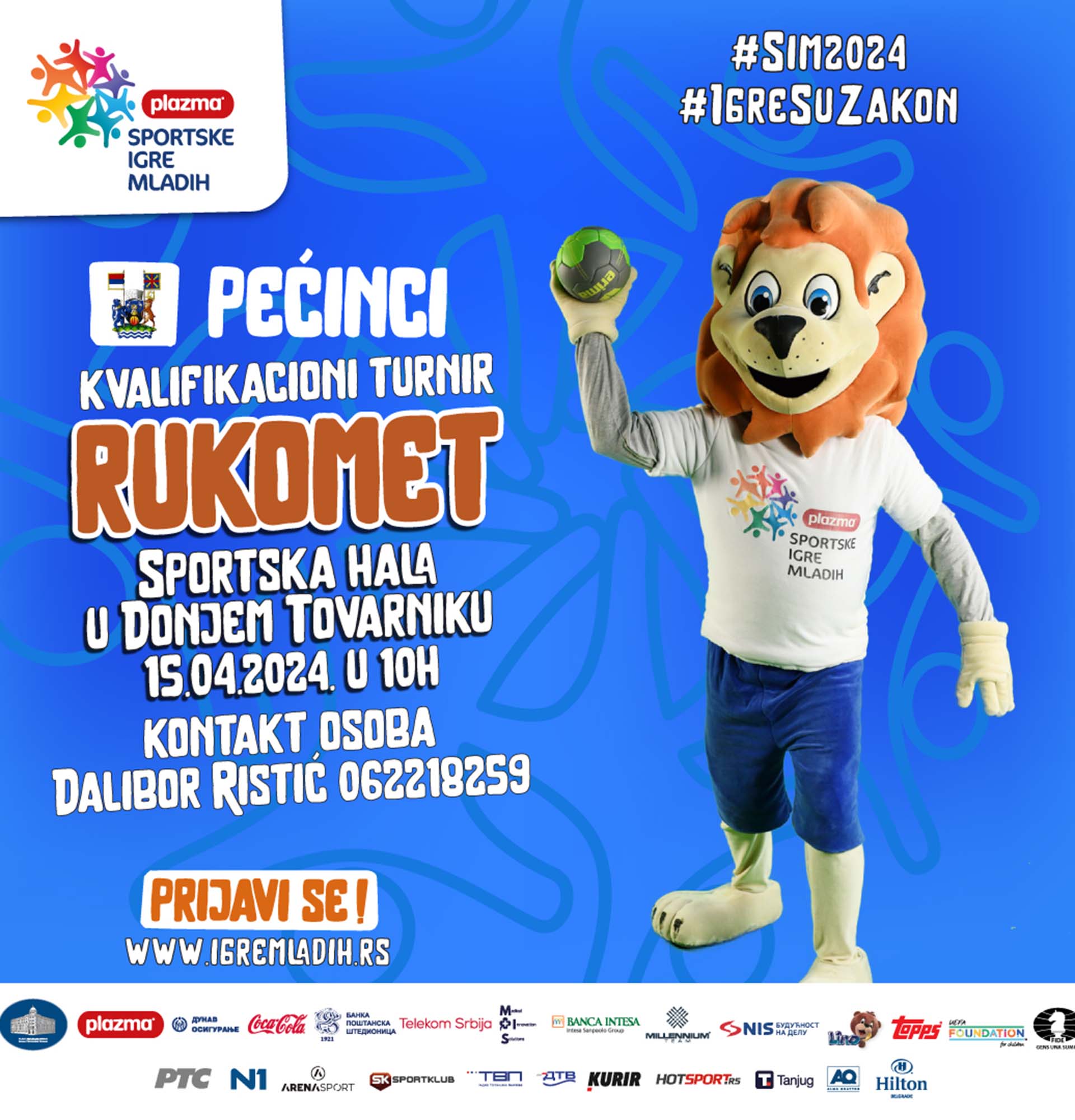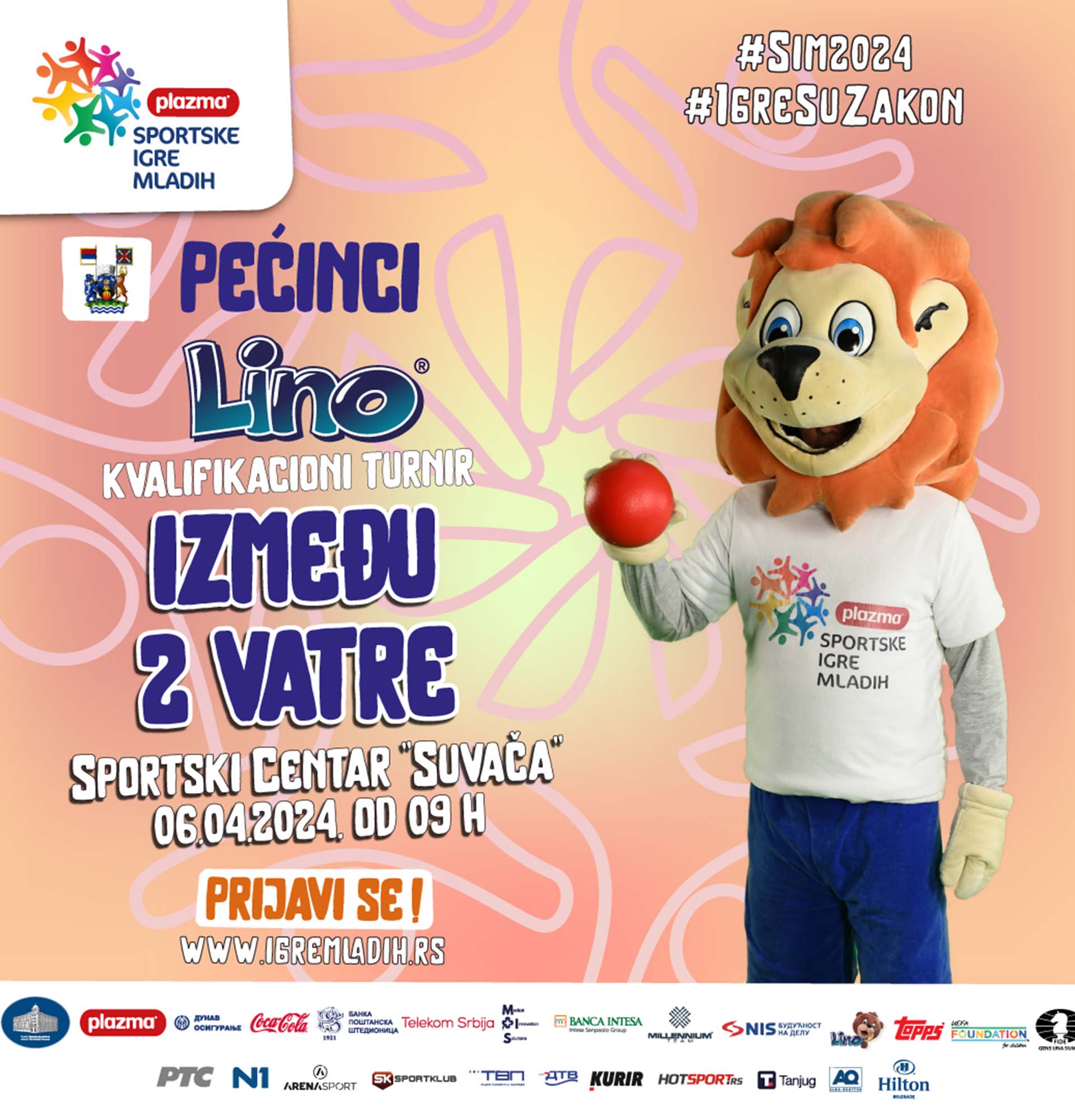 Плазма Спортске игре младих у сарадњи са Спортским савезом „Развој спортова” Пећинци, организују у Пећинцима квалификационе турнире у суботу 06. априла на Спортском центру Сувача у Пећинцима и у понедељак 08. априла у Спортској хали у Доњем Товарнику.