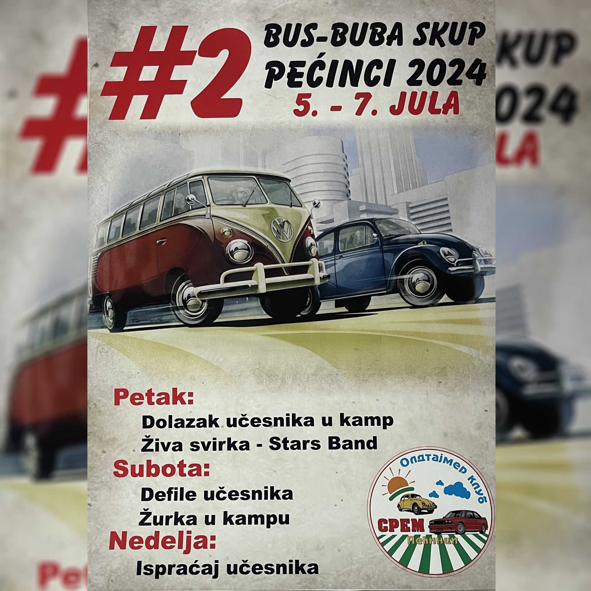 Други Бус-буба скуп у Пећинцима биће одржан 5, 6. и 7. јула, када ће се у нашој општини поново окупити поклоници Фолксвагенових комбија и аутомобила Буба, некада најпопуларнијих модела овог немачког произвођача возила. Организатор Скупа је Олдтајмер клуб “Срем” из Пећинаца, а покровтељ манифестација је пећиначка локална самоуправа.