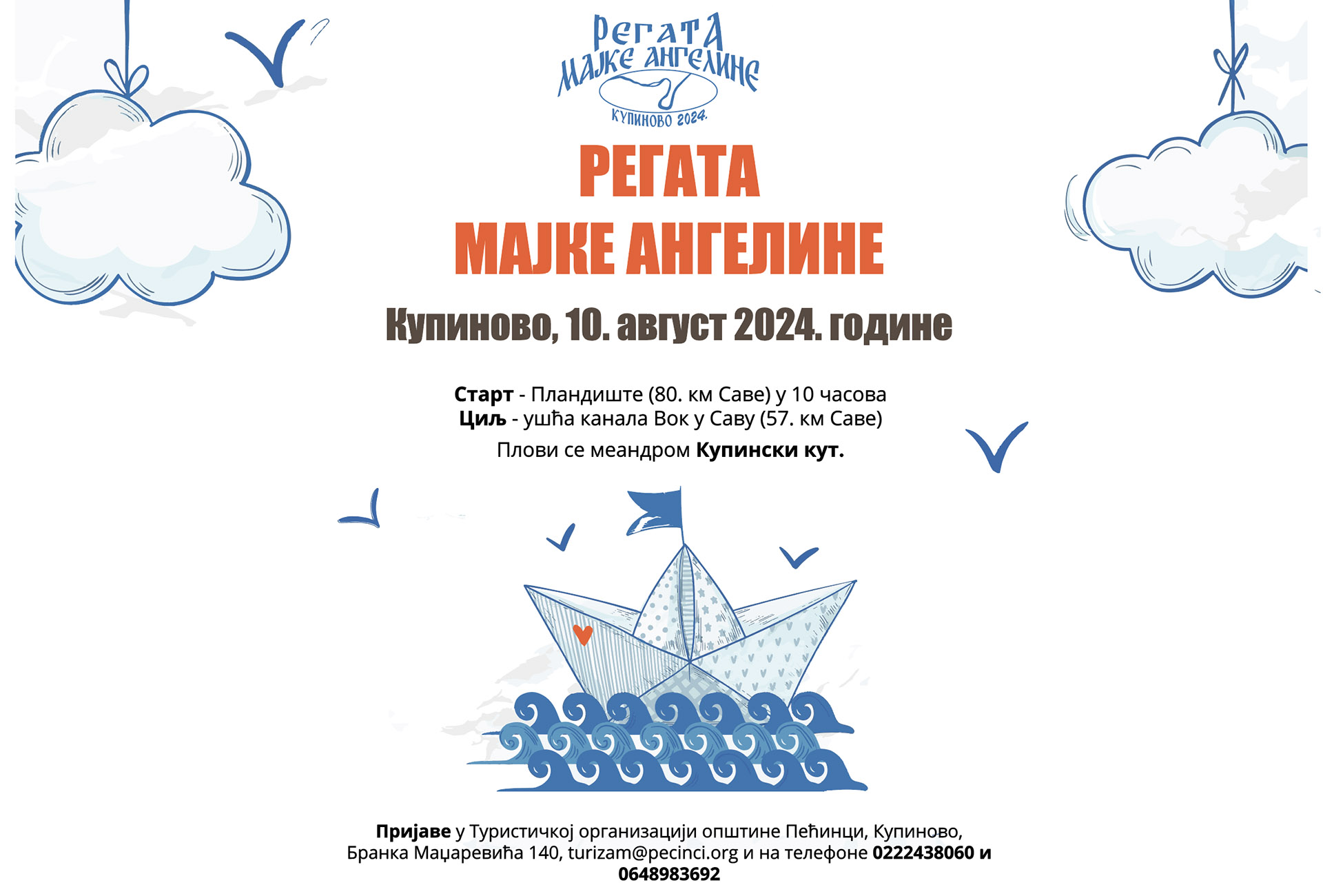 Туристичка организација општине Пећинци под покровитељством пећиначке локалне самоуправе, организује и ове године Регату Мајке Ангелине која ће испловити у суботу, 10. августа са Пландишта у Купинову.
