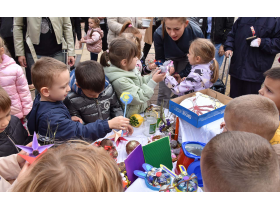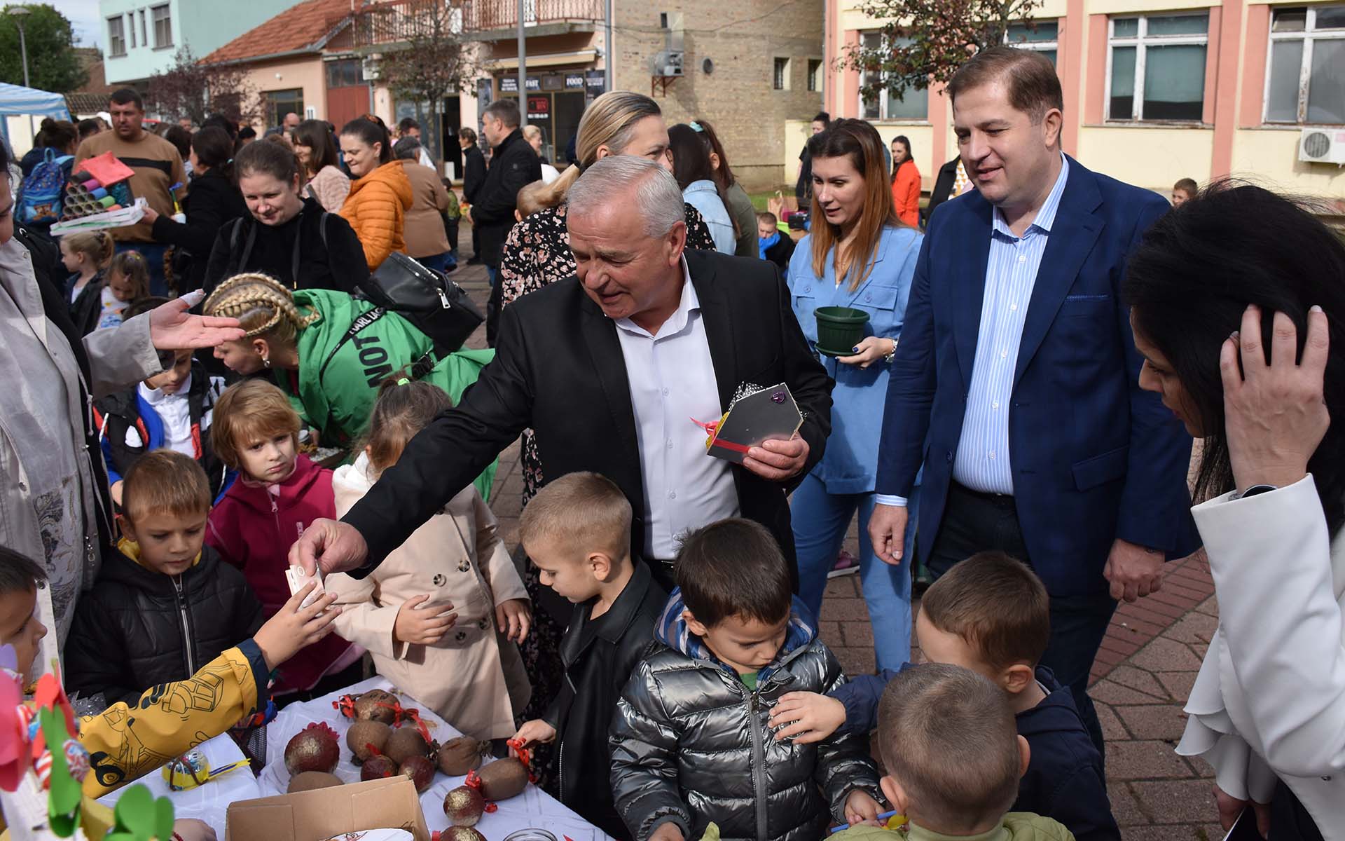 Вашар полазника пећиначког вртића, у недељи посвећеној деци, постао је традиционалан, а ове године посетио га је и Никола Вукелић, државни секретар, из Министарства за бригу о породици и демографију, који је заједно са Зораном Војкићем, замеником председника општине Пећинци, обишао штандове на којима су најмлађи изложили и продавали своје креације.
