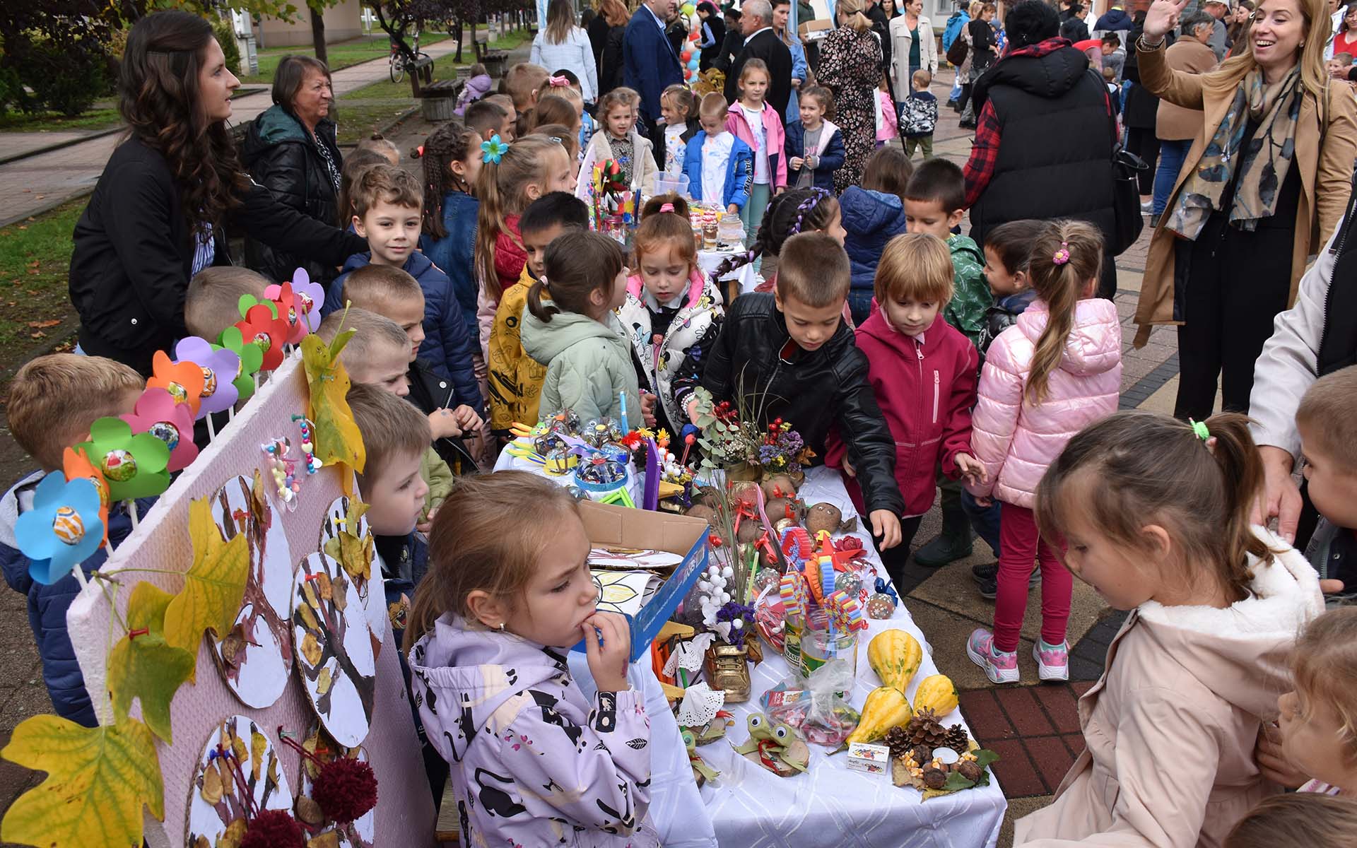 Живописни штандови у јесењим мотивима полазника Предшколске установе „Влада Обрадовић Камени“ оживели су данас пећиначко шеталиште поводом обележавања Дечије недеље.