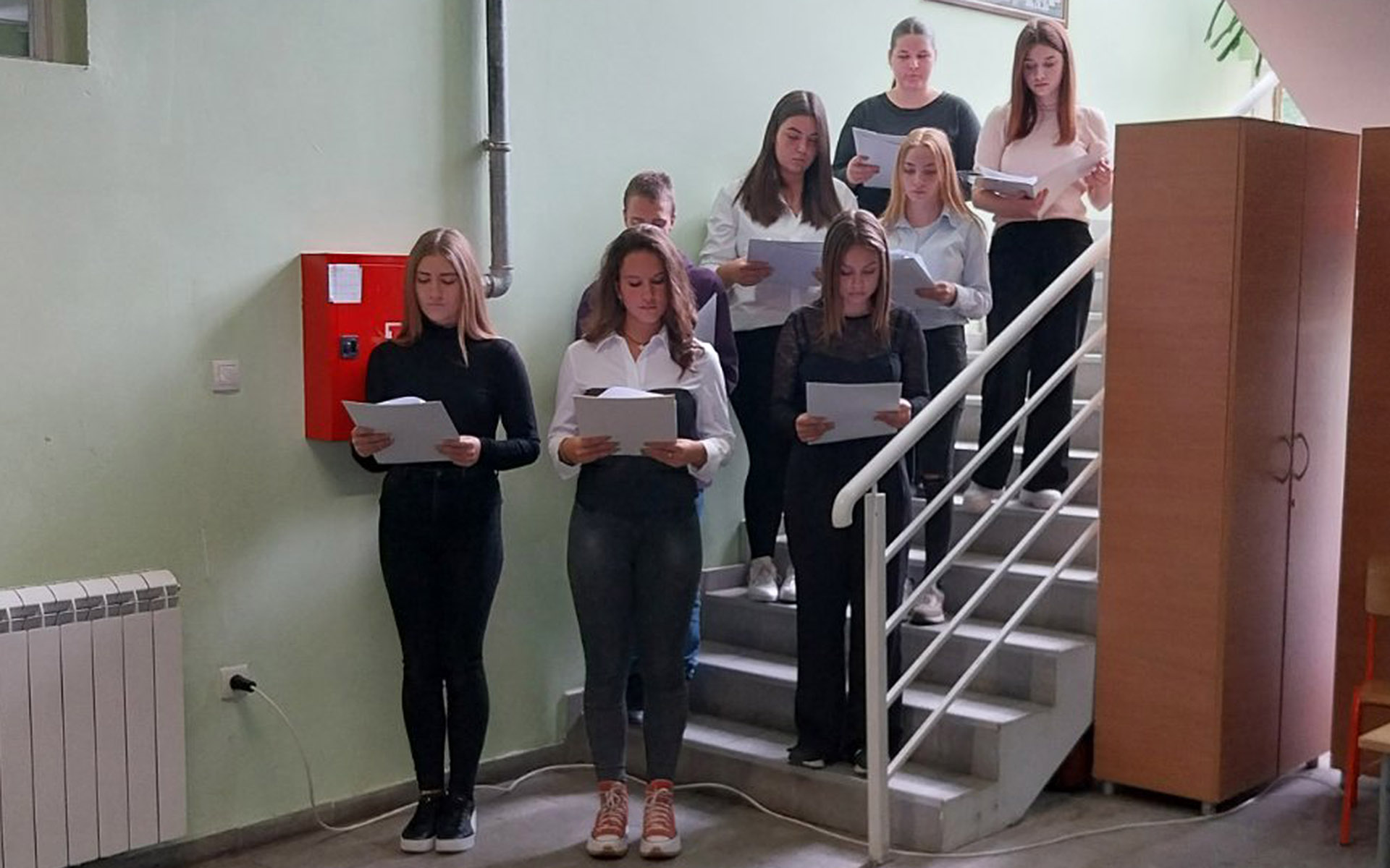 Чланови рецитаторске секције, коју воде професорке Тања Петковић и Јасмина Кузмић, ученици Сања Шоргић, Тамара Дамјановић, Ана Илић, Наталија Јаковљевић, Анастасија Филиповић, Анастасија Драгоњић, Катарина Лазић и Максим Лукач, казивали су стихове домаћих и страних савремених песника.