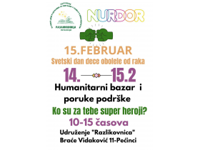 Поводом Светског дана деце оболеле од рака, Удружење за помоћ деци и одраслима са сметњама у развоју и инвалидитетом „Разликовница“ из Пећинаца организује у сарадњи са НУРДОР-ом хуманитарну акцију у просторијама удружења у улици Браће Видаковић 11.