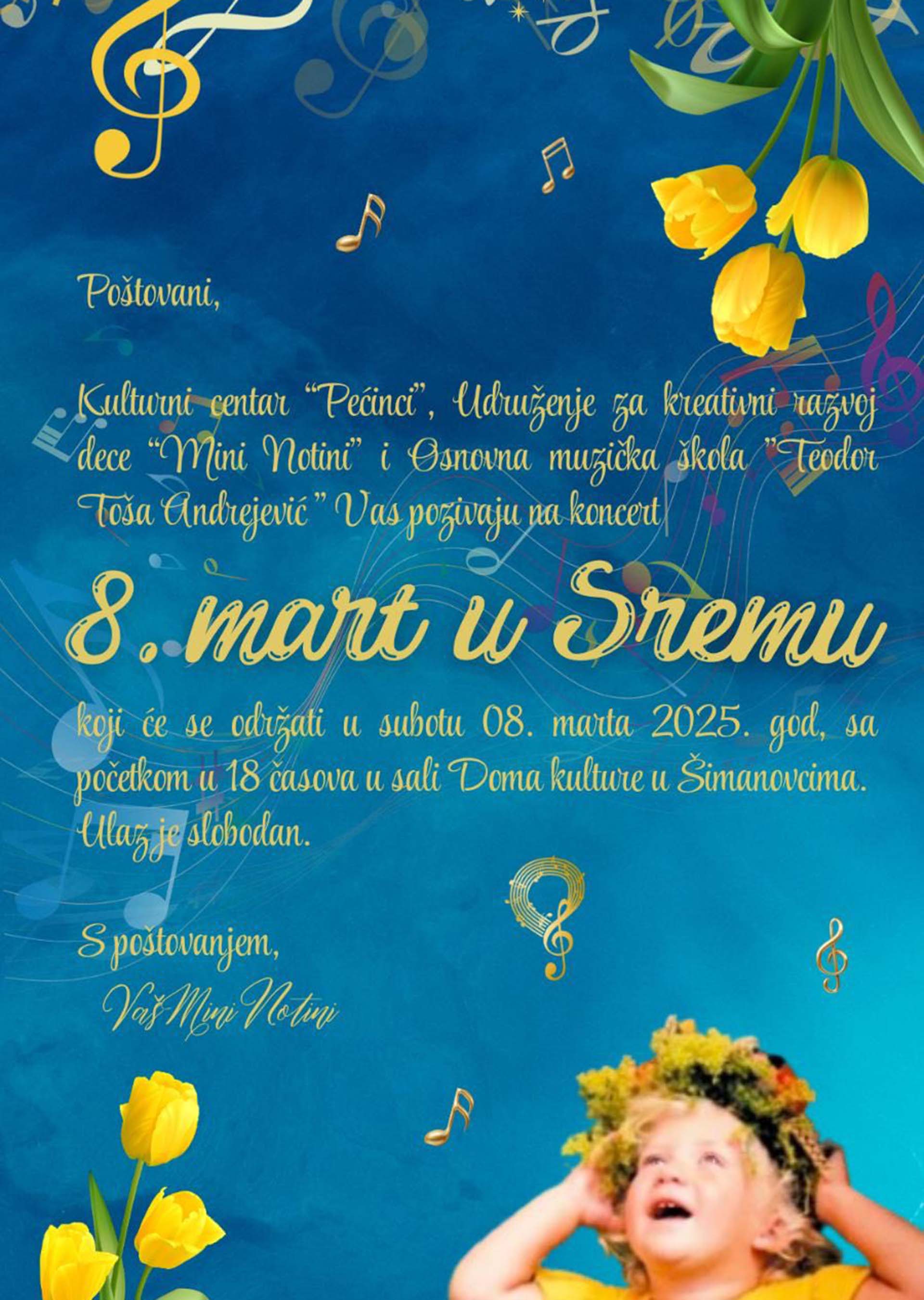 Поводом обележавања Међународног дана жена, 8. марта, у шимановачком Дому културе са почетком у 18.00 часова биће одржан концерт Удружења за креативни развој деце „Мини Нотини“.