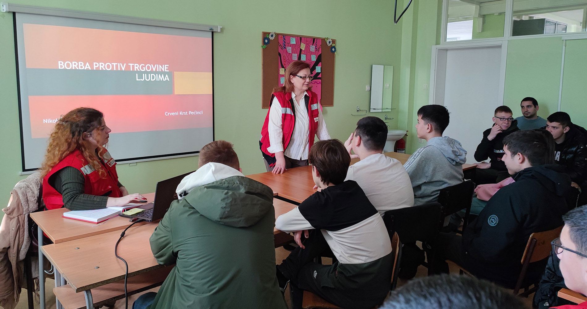 Током прошле недеље Црвени крст Пећинци је у сарадњи са пећиначком Техничком школом организовао предавање за ученике прве године на тему борбе против трговине људима.