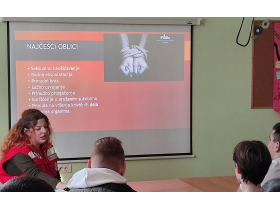 Волонтер Црвеног крста Милица Николић, обрадила је основне теме из ове области као што је, пре свега, препознавање трговине људима, али и како допринети борби уз неколико начина - информисање заједнице, превенција кроз едукацију младих и подршка жртвама.