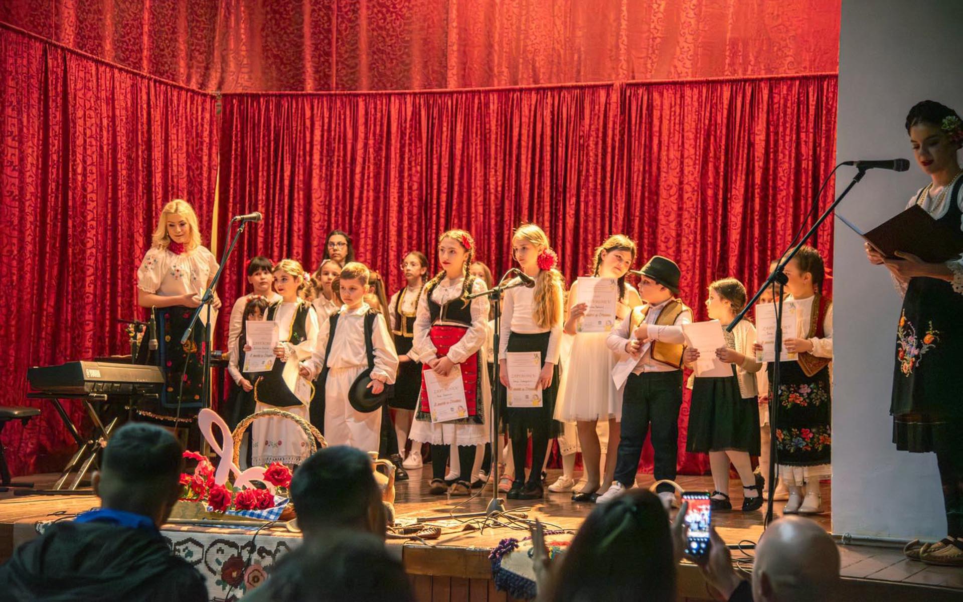 Шимановачкој публици представили су се најмлађи музичари – чланови удружења, са територије општине Пећинци, под диригентском палицом едукаторке и председнице удружења Иване Охмут.