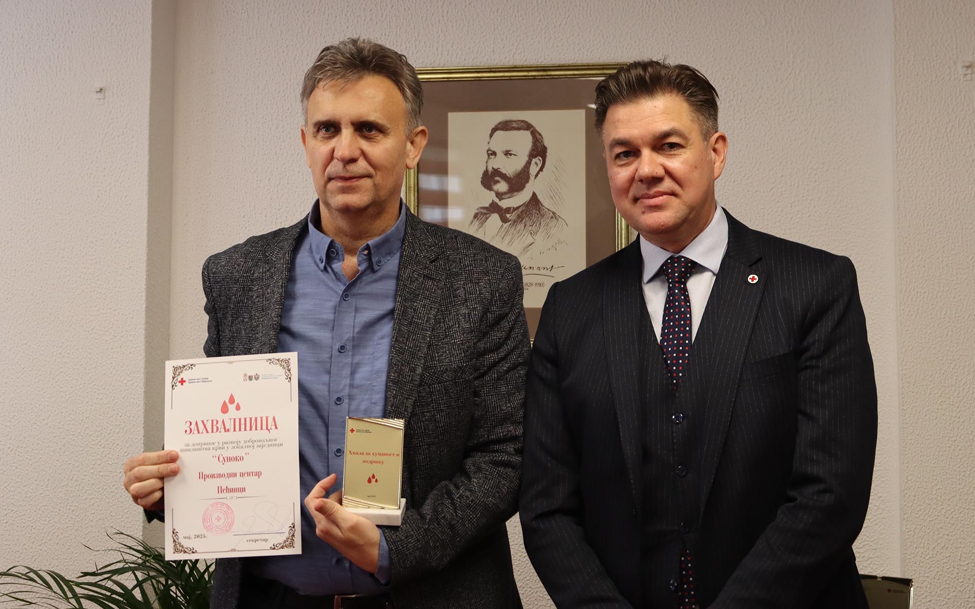 Црвени крст Пећинци је за ово признање ове године предложио компанију „Суноко“ производни погон Пећинци, а у име компаније награду је примио технички директор Бранислав Богдановић.