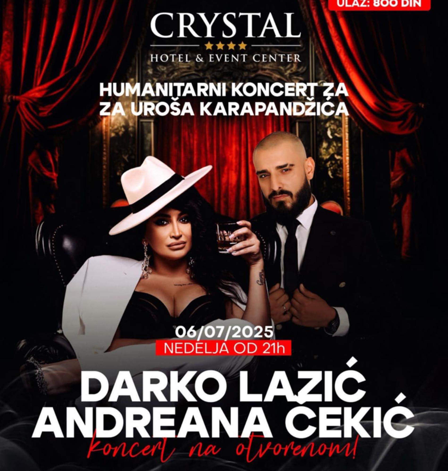 Концерт почиње у 21.00 час, а наступиће звезде естраде Дарко Лазић и Андреана Цекић.