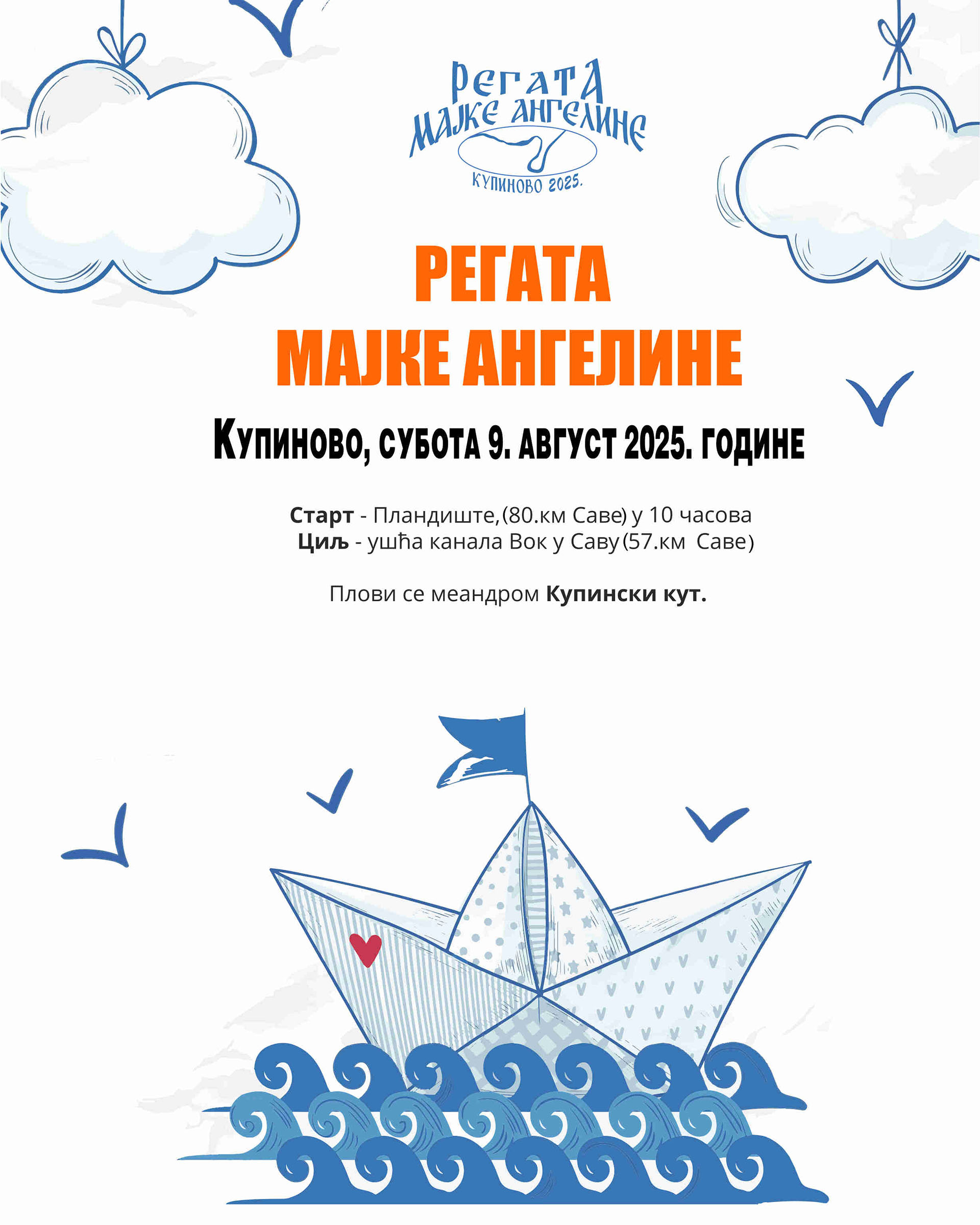 Туристичка организација општине Пећинци под покровитељством пећиначке локалне самоуправе, организује и ове године Регату Мајке Ангелине која ће испловити у суботу, 9. августа са Пландишта у Купинову.
