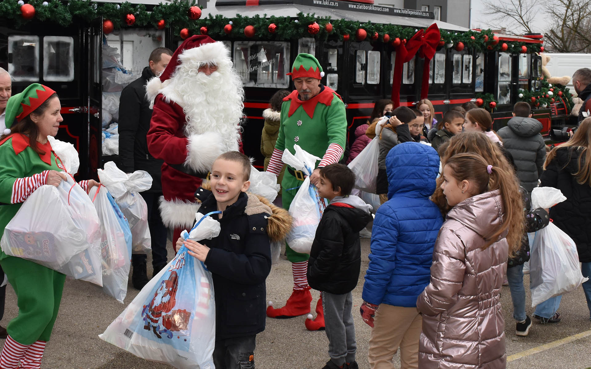 Деда Мраз и пакетићи стигли новогодишњим возом (Видео)
