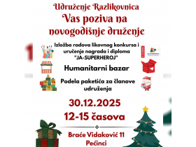 Како нам је рекла председница Удружења Александра Марковић, новогодишње дружење је већ постало традиционално и очекује велики број деце и гостију, а у оквиру дружења биће организована изложба радова са Ликовног конкурса „ЈА – СУПЕРХЕРОЈ“ и подела новогодишњих пакетића члановима Удружења.